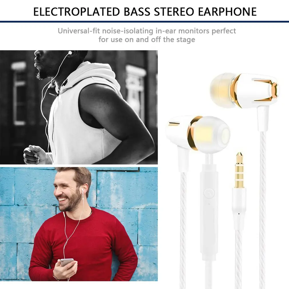 Проводные наушники с гальваническим покрытием, басовые стерео наушники-вкладыши с микрофоном, гарнитура для звонков и телефонных звонков для Android Ios 3,5 мм