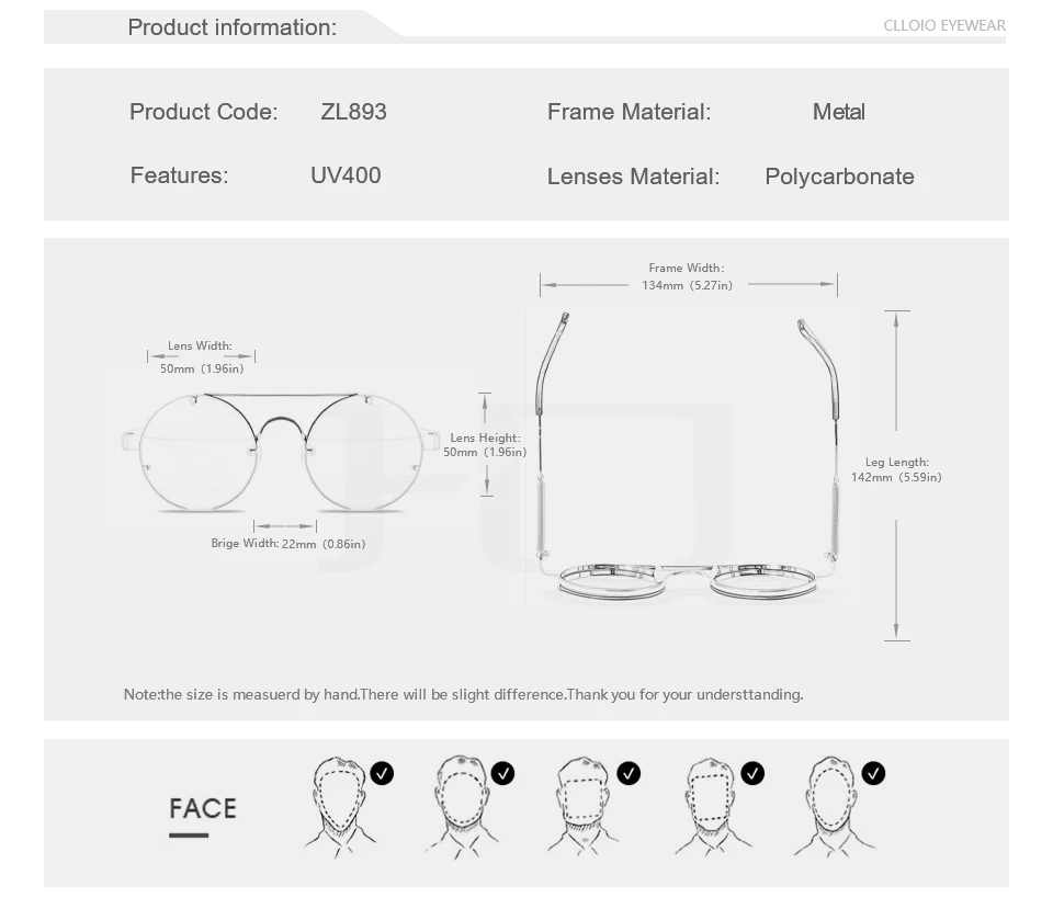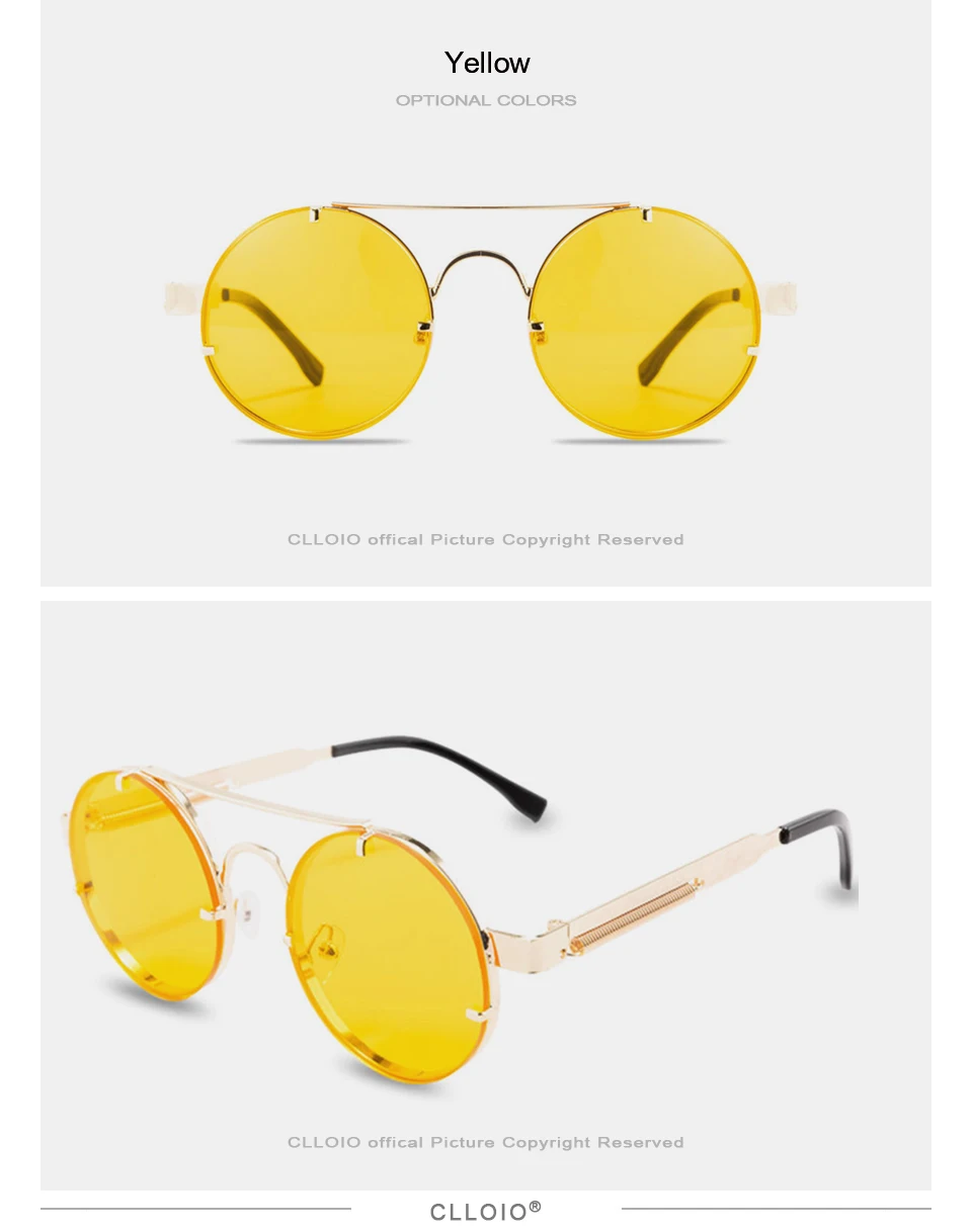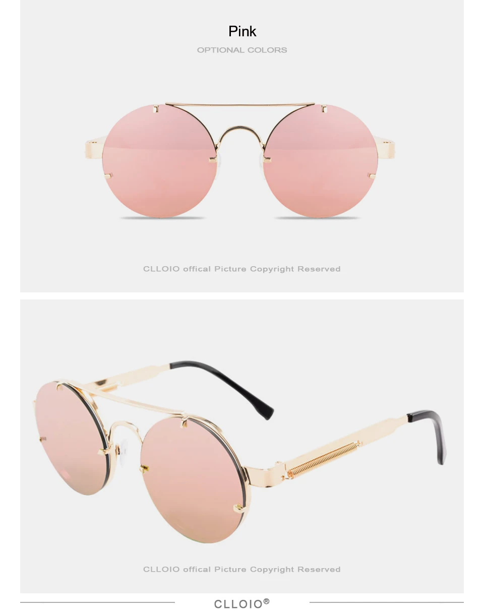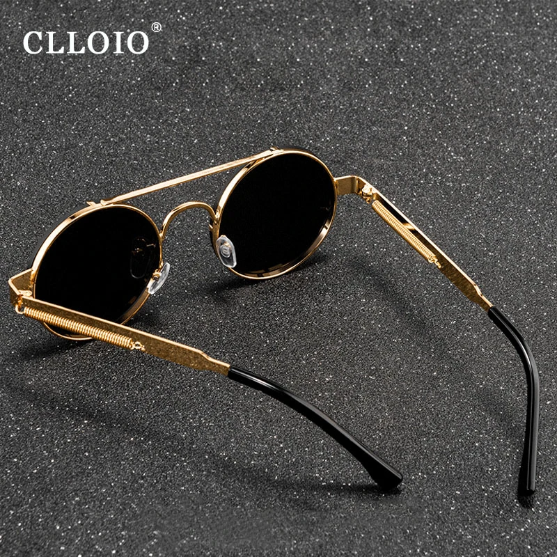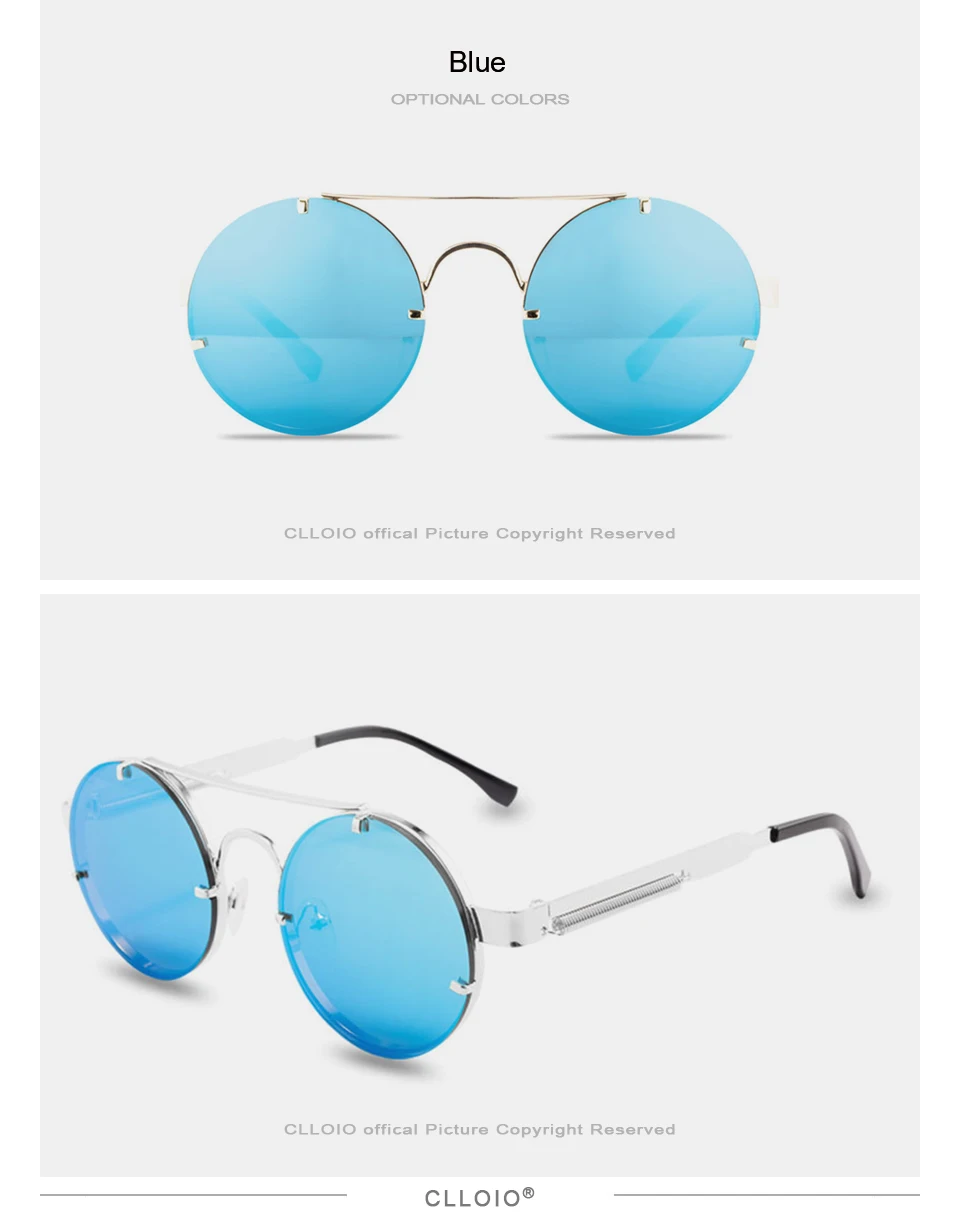 Круглые Солнцезащитные очки CLLOIO в стиле стимпанк, Мужские Винтажные Солнцезащитные очки без оправы для женщин и мужчин, металлические солнцезащитные очки в стиле панк, эластичные заушники, солнцезащитные очки