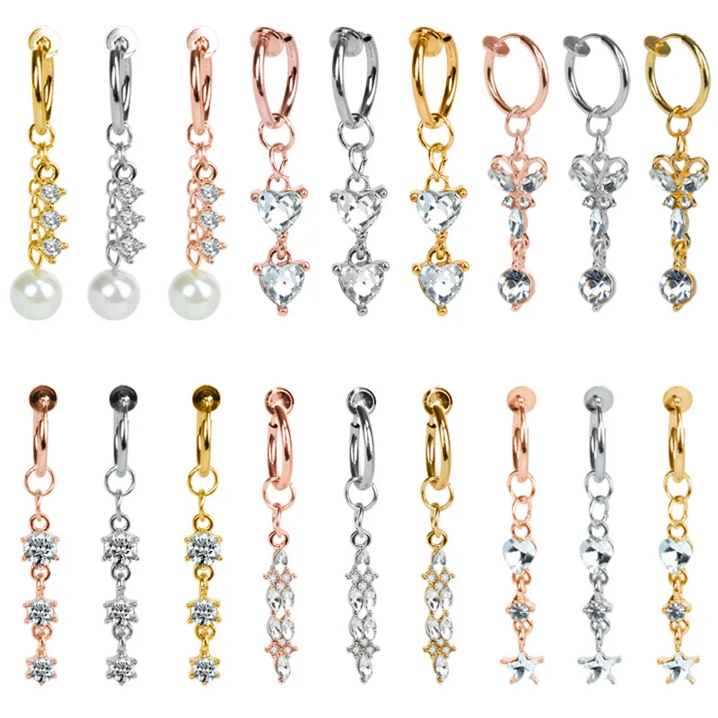 Серьги-пупки с цирконом в форме сердца, женское кольцо, ювелирные изделия 316, титановая сталь, жемчуг, пупок, имитация пирсинга, серьги Pandents