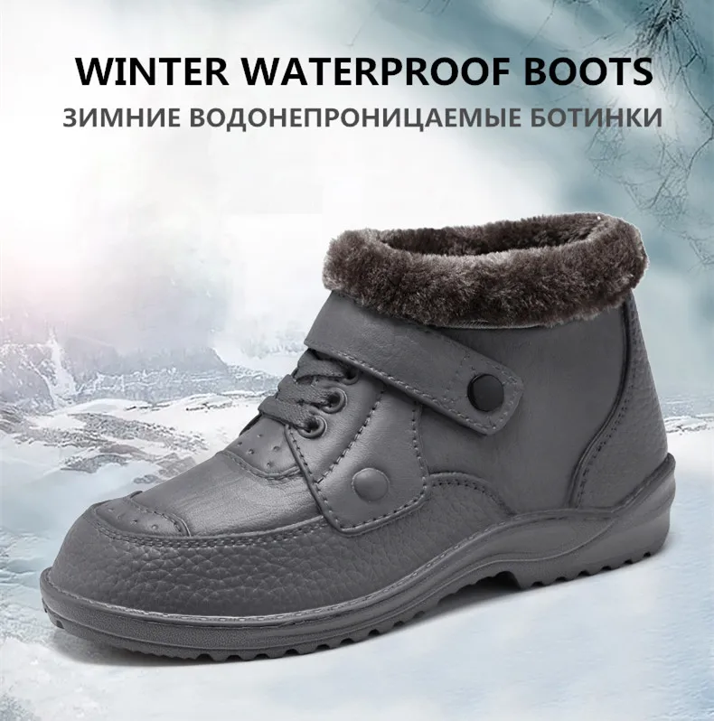 Мужские зимние ботинки, водонепроницаемые кожаные кроссовки, очень ...