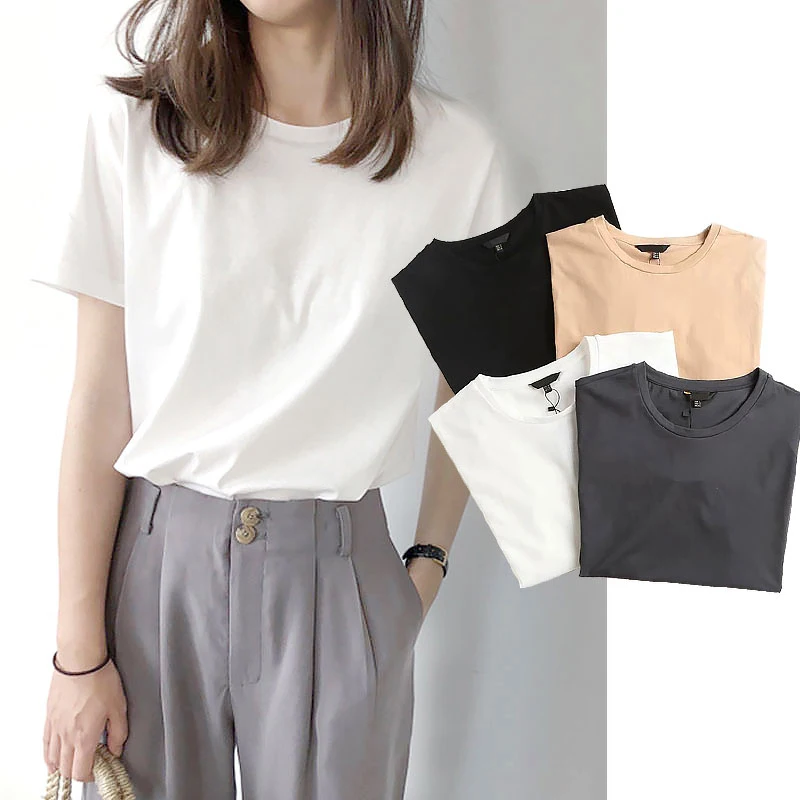 Базовые летние женские футболки, корейские топы, элегантные базовые...
