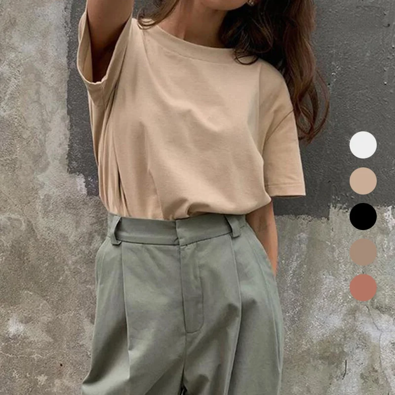 Женские топы, Однотонная футболка из чистого хлопка для женщин, лет...