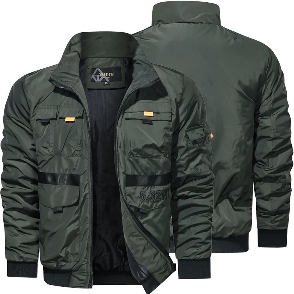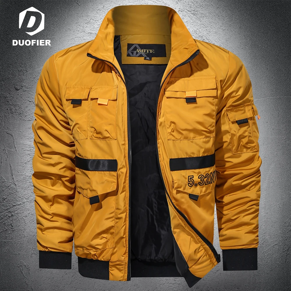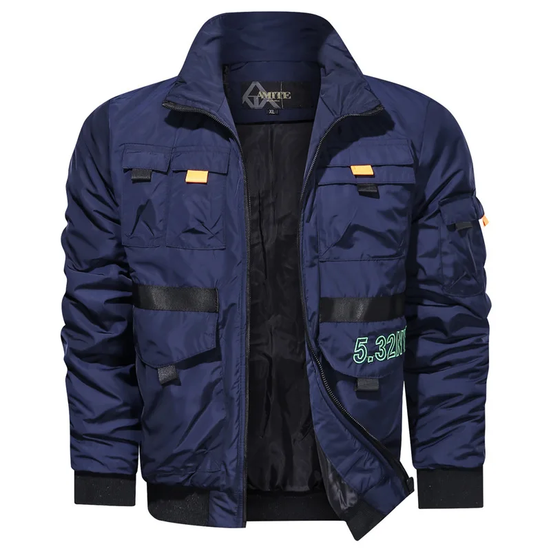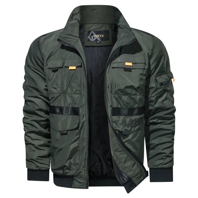 Осенняя модная куртка, Мужская верхняя одежда, куртка-бомбер в стиле пилот, черная повседневная мужская куртка с воротником-стойкой, Весенняя легкая куртка
