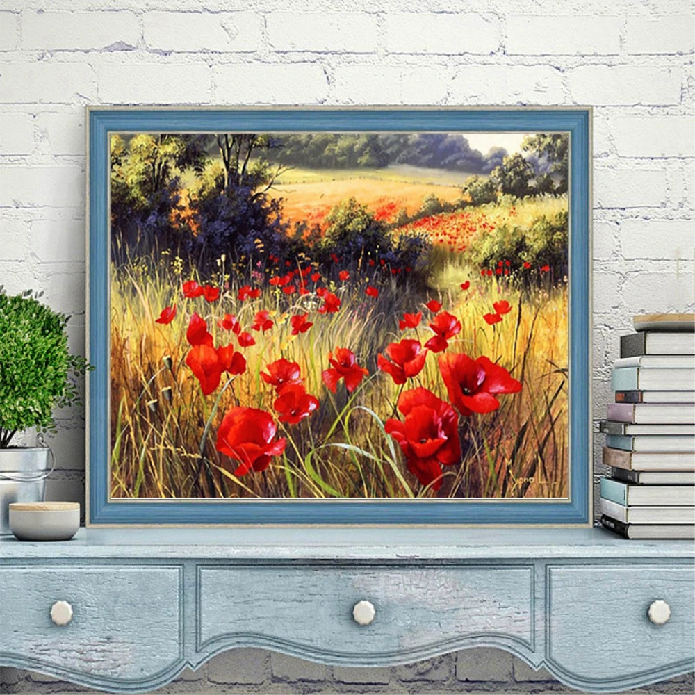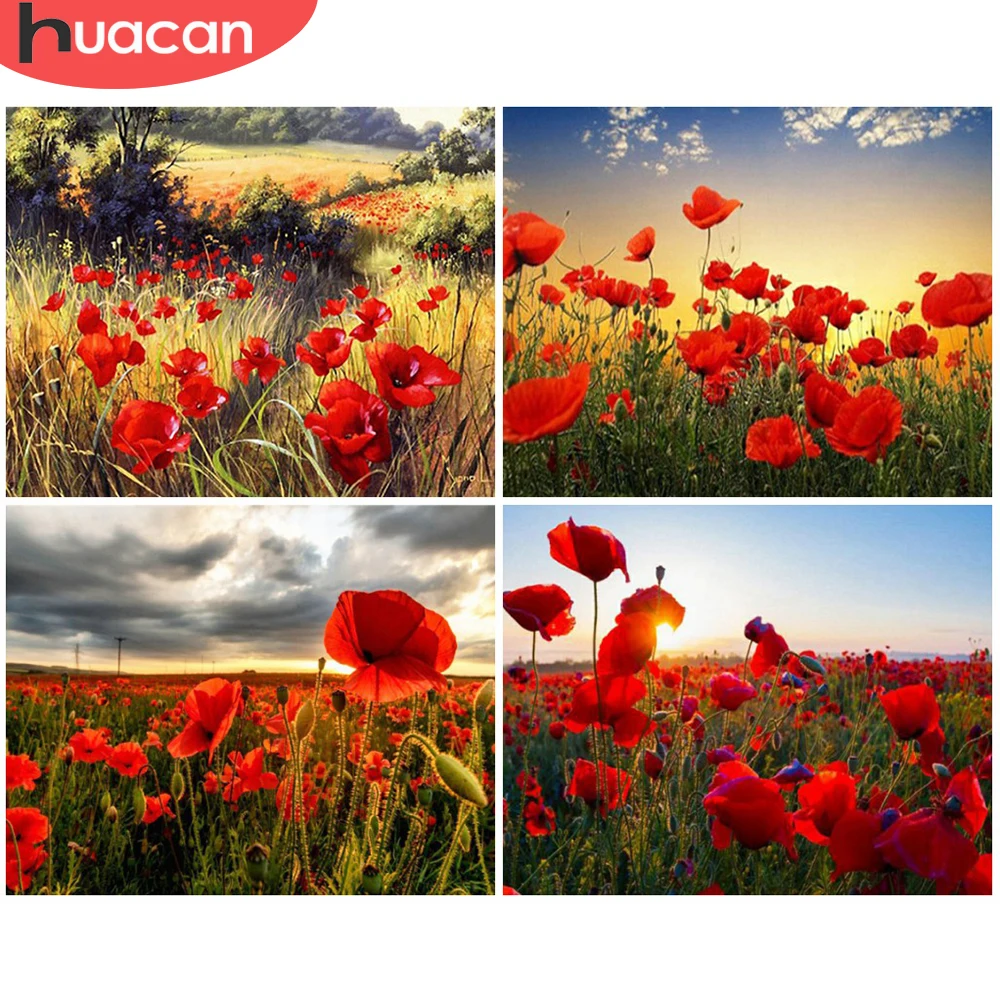 HUACAN живопись по номеру Poppy цветочные наборы для взрослых ручная роспись на холсте DIY раскраска по номеру море цветов домашний декор