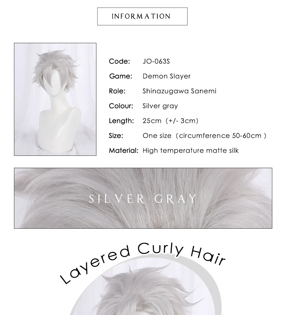 Парик для косплея шиназугава санеми для рассекания демонов, серебристо-серый архетипический парик для аниме, волосы для косплея