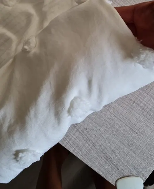 Пододеяльник точно такой же, как на фотографиях, очень белый и молния на спине, покрытие двух подушек удлиненное. (На фото вы можете увидеть разницу с Ikea, которая является необработанным цветом, чем белый, и наволочки для подушки квадратны. Ткань Aliexpres синтетическая, а Ikea-хлопок и лиоцелл, необходимо сказать, что между ними есть довольно разница в цене, это то, что я очень доволен покупкой, это то, что я ожидал. Быстрая доставка. Спасибо продавцу! Я рекомендую вам 5