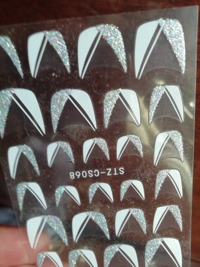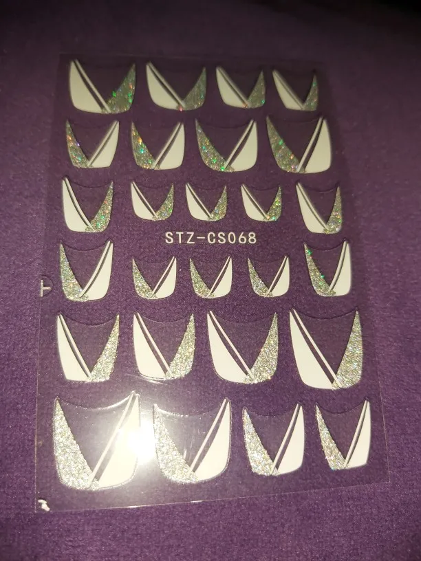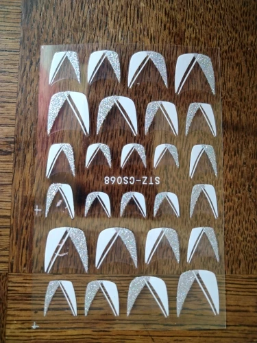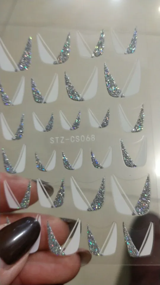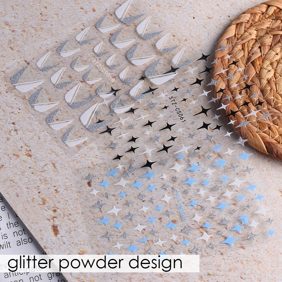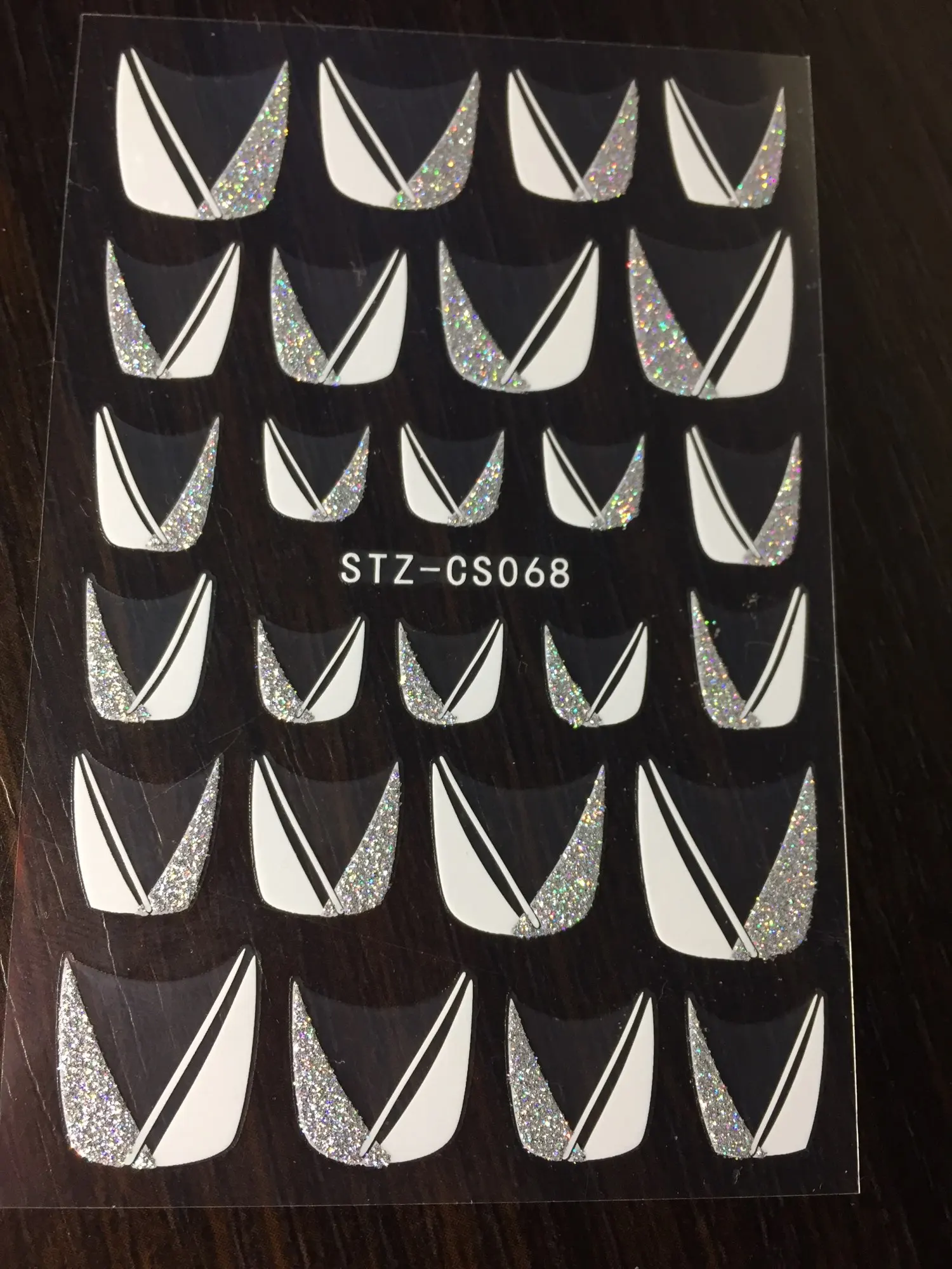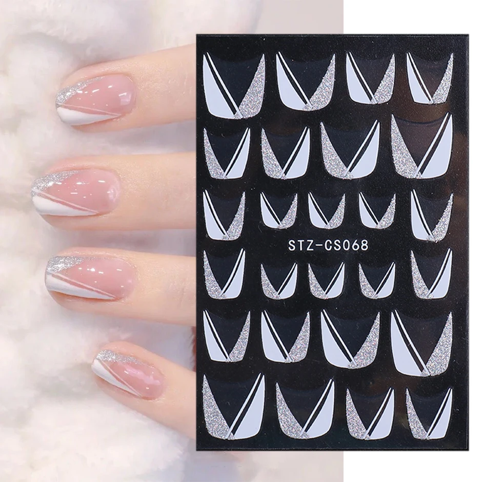 Серебристый Блеск Французская Линия Ногтей Наклейки Блестящие Белые Наклейки с Косой Полосой 3D Креативная Геометрия Звездные Советы по маникюру CHSTZ-CS068