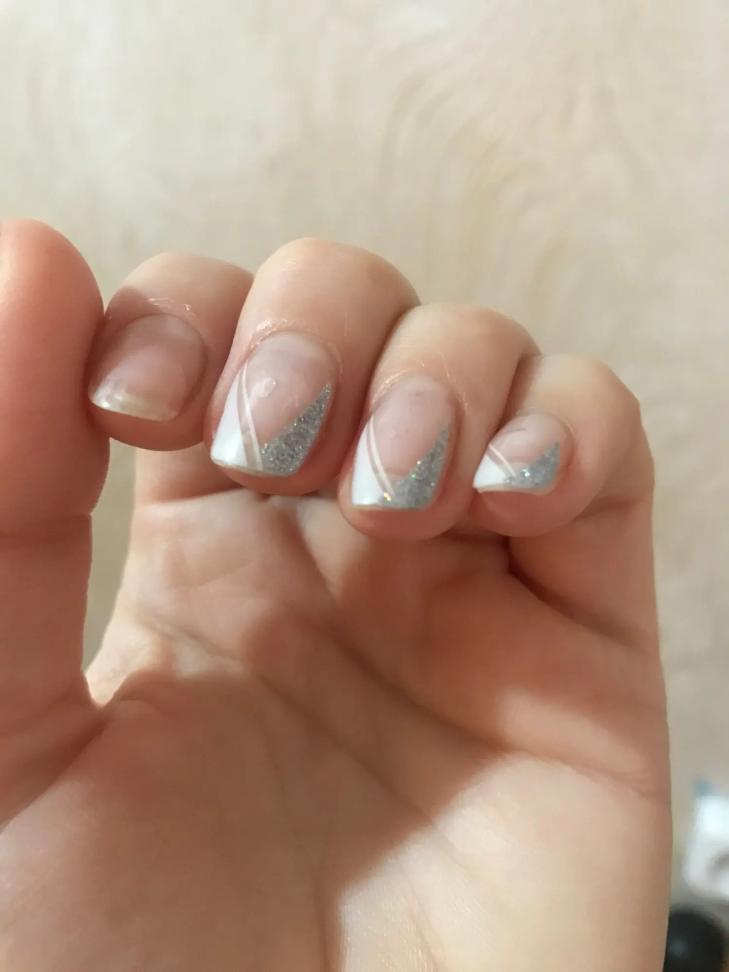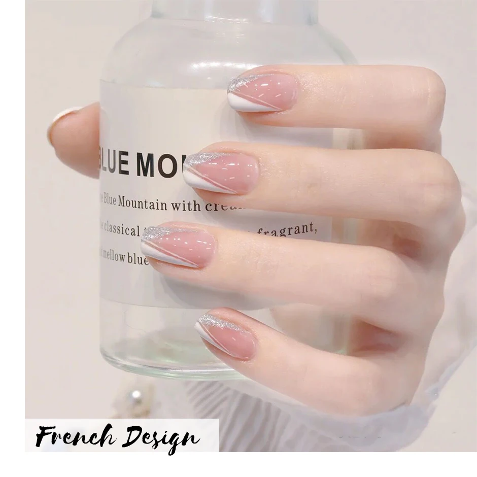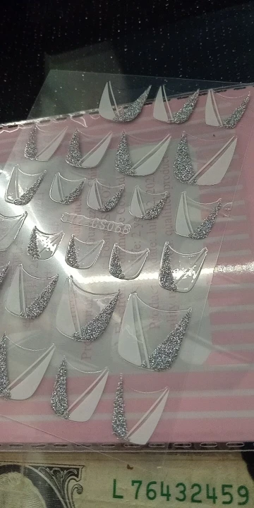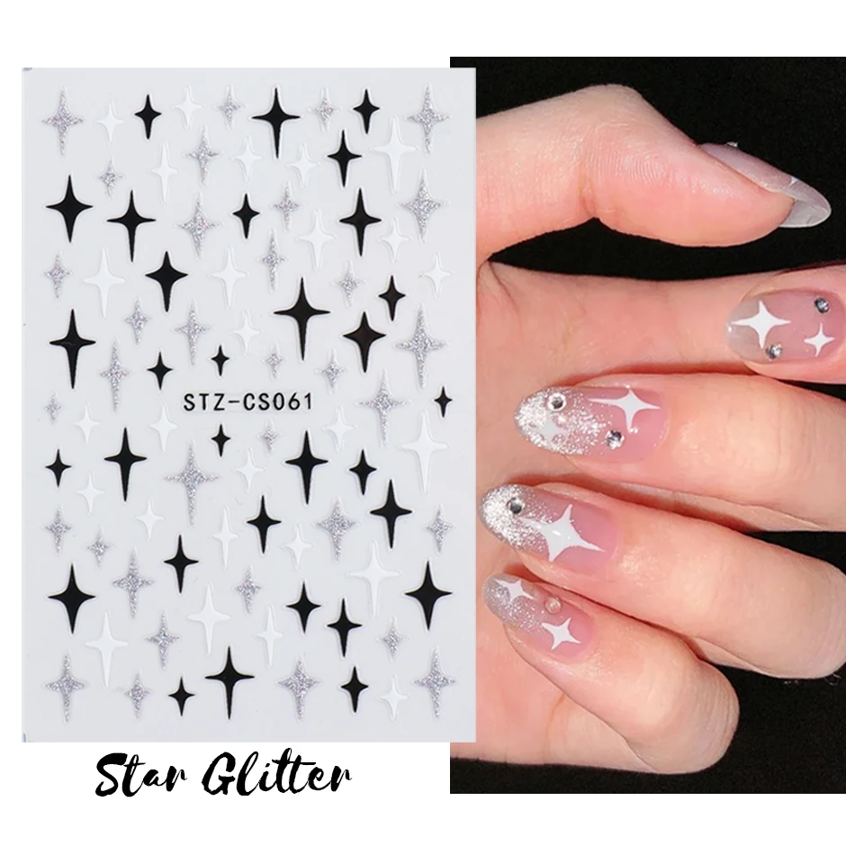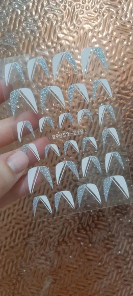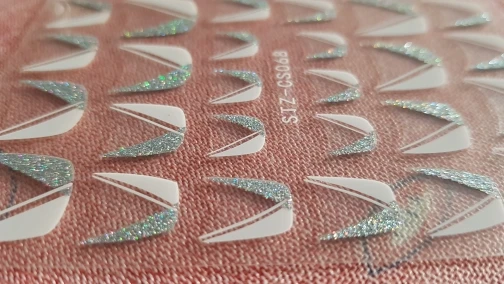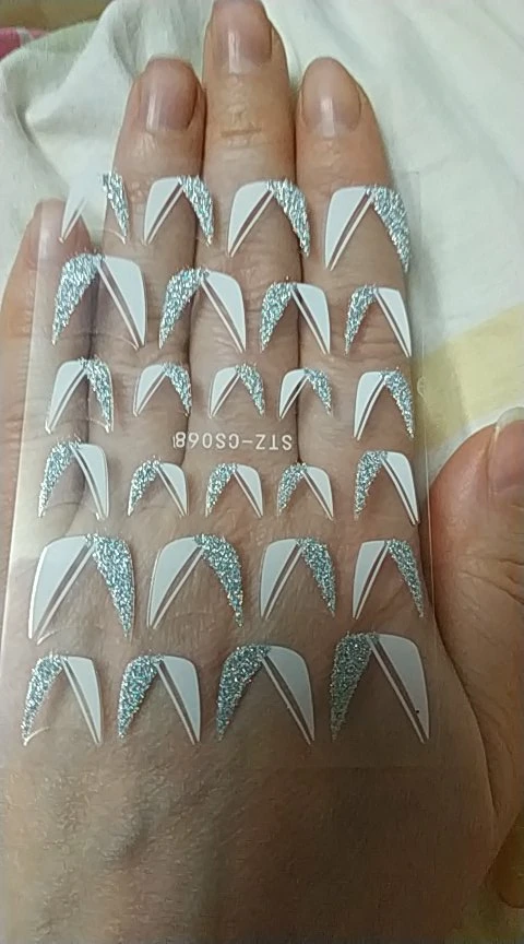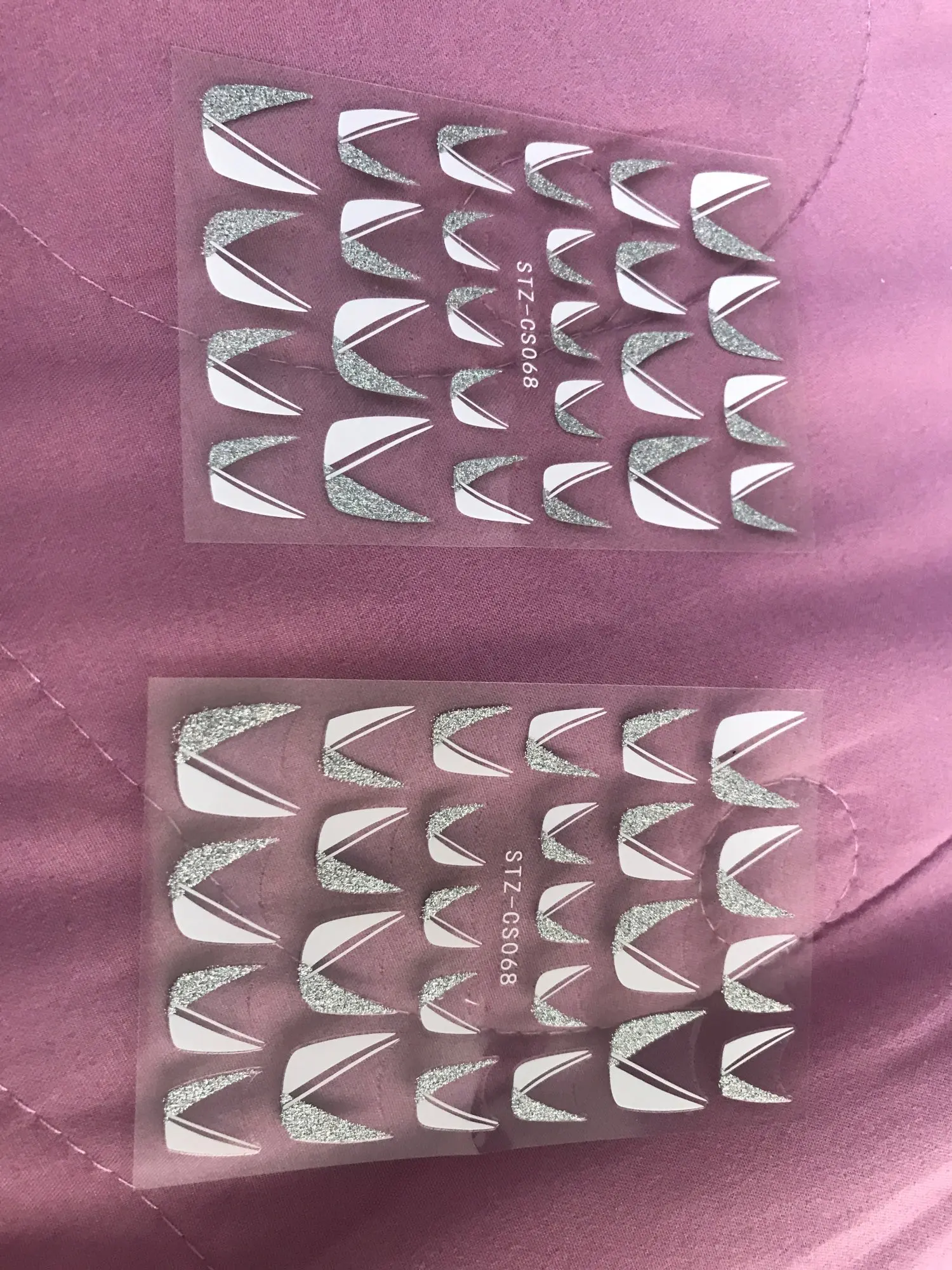 Серебристый Блеск Французская Линия Ногтей Наклейки Блестящие Белые Наклейки с Косой Полосой 3D Креативная Геометрия Звездные Советы по маникюру CHSTZ-CS068