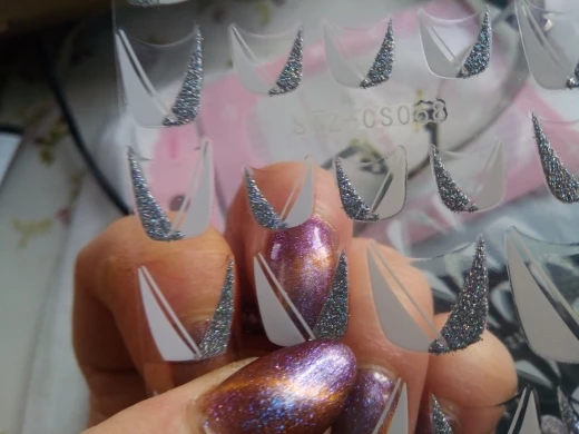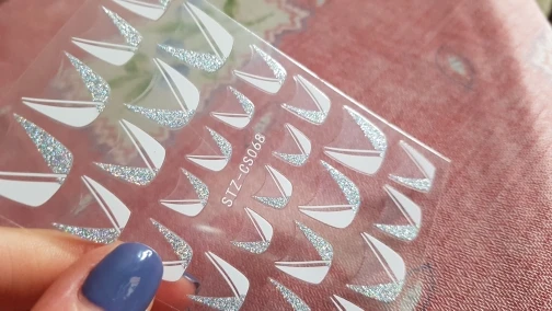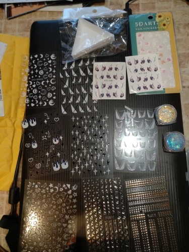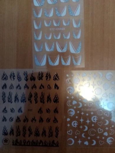 Наклейки замечательные, но только на очень тонкие пальцы. Для меня на большой палец ни одна из самых широких наклеек не подходит- по краям остаются пустоты по 2-3мм, хотя пальцы у меня вроде не толстые. Спор открывать не стала - отдам дочке подростку.