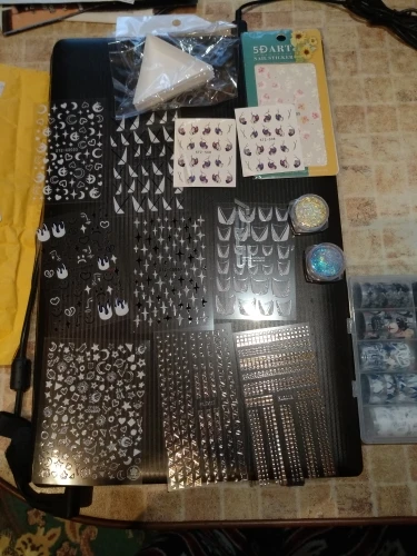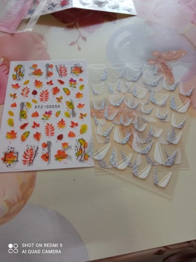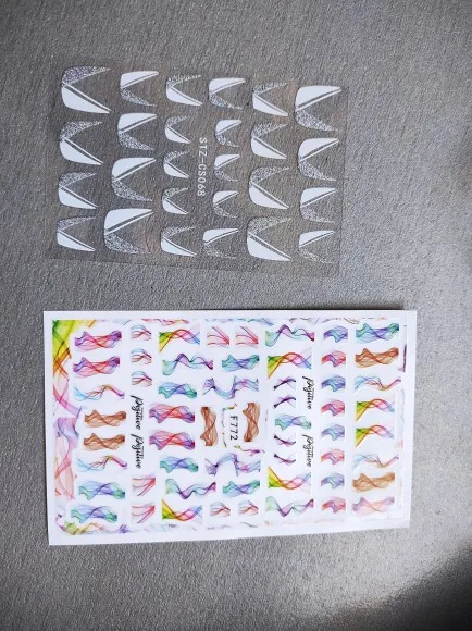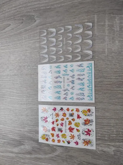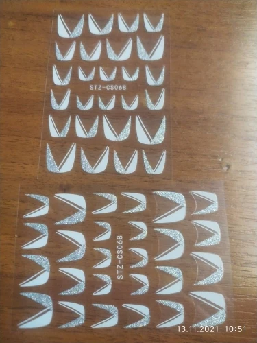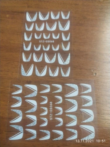 Наклейки очень красивые. на широкую пластину. заказала 11.11.2021. Заказ пришёл 28.11.2021