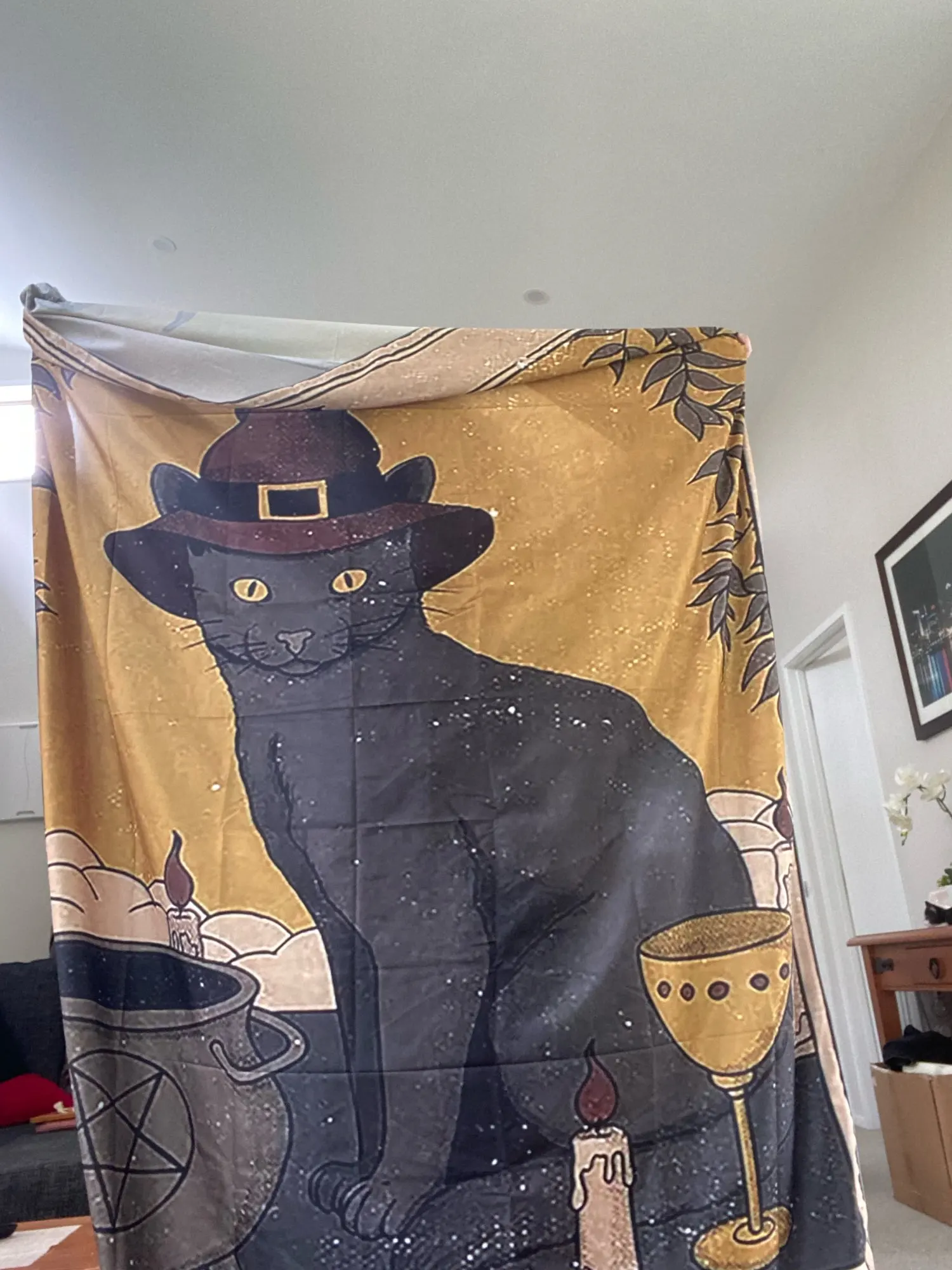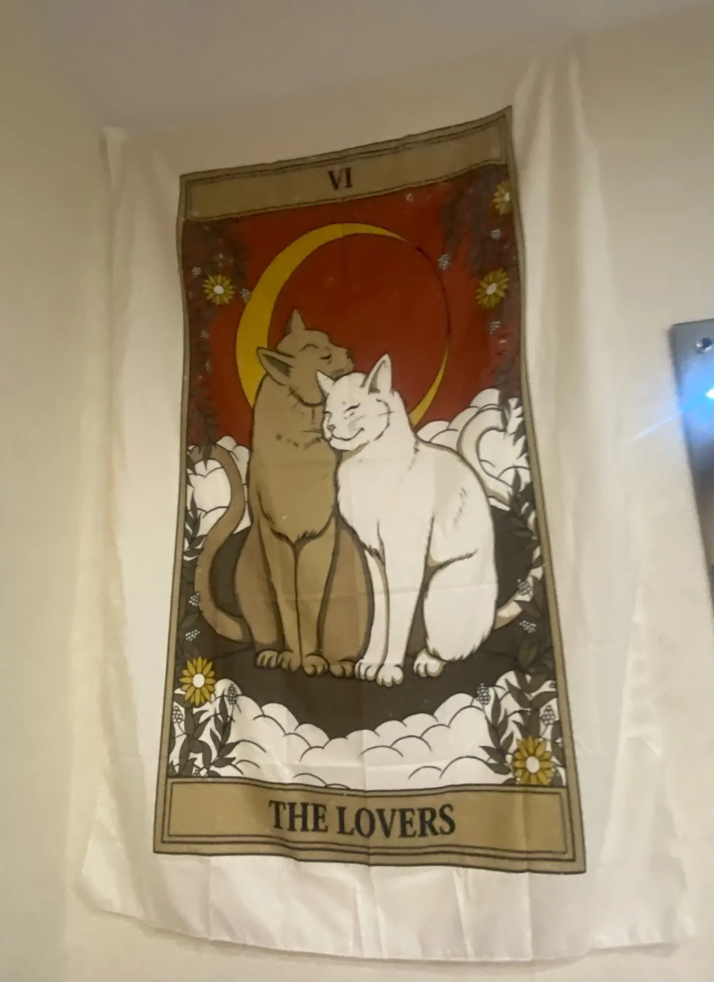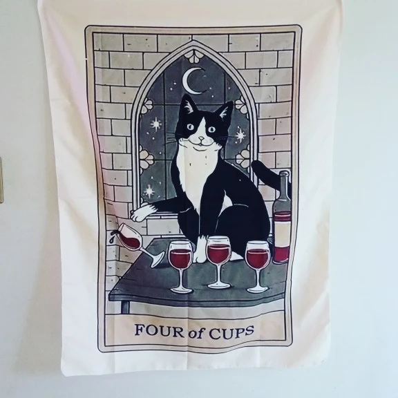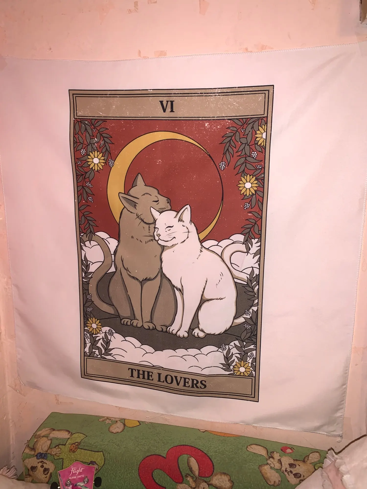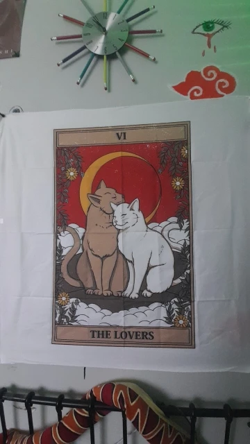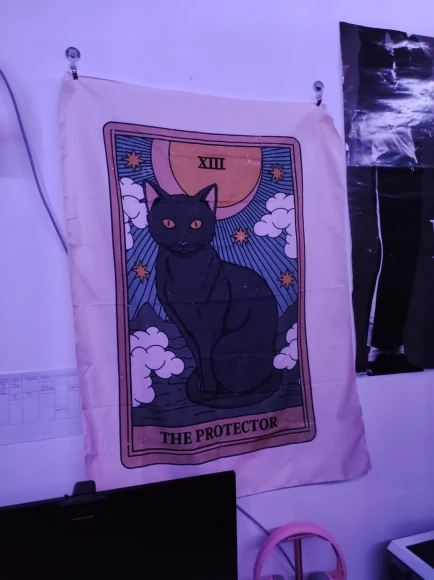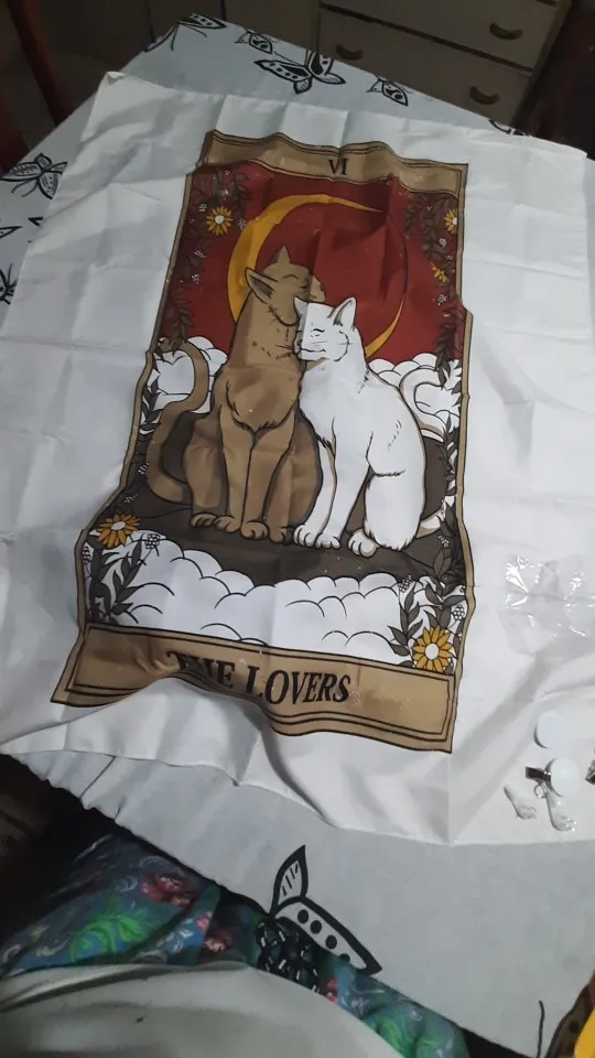 Долго искала такой гобелен с картой влюблённых, но без людей. Котики всегда лучшее решение!!! Очень мило смотрится, ткань приятная, цена радует, есть два варианта креплений в комплекте (стену не пришлось сверлить). Только возможно на самых больших размерах изображение будет казаться не четким