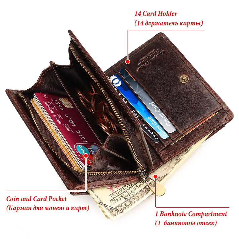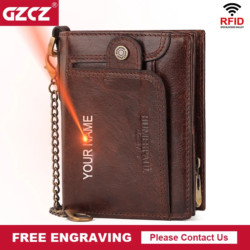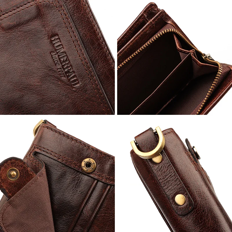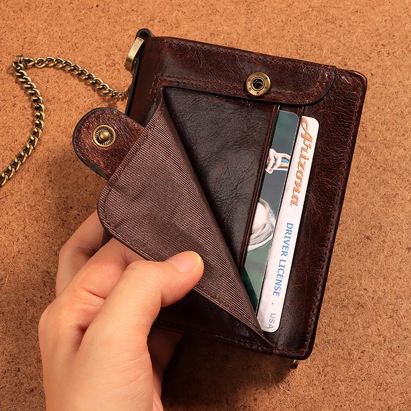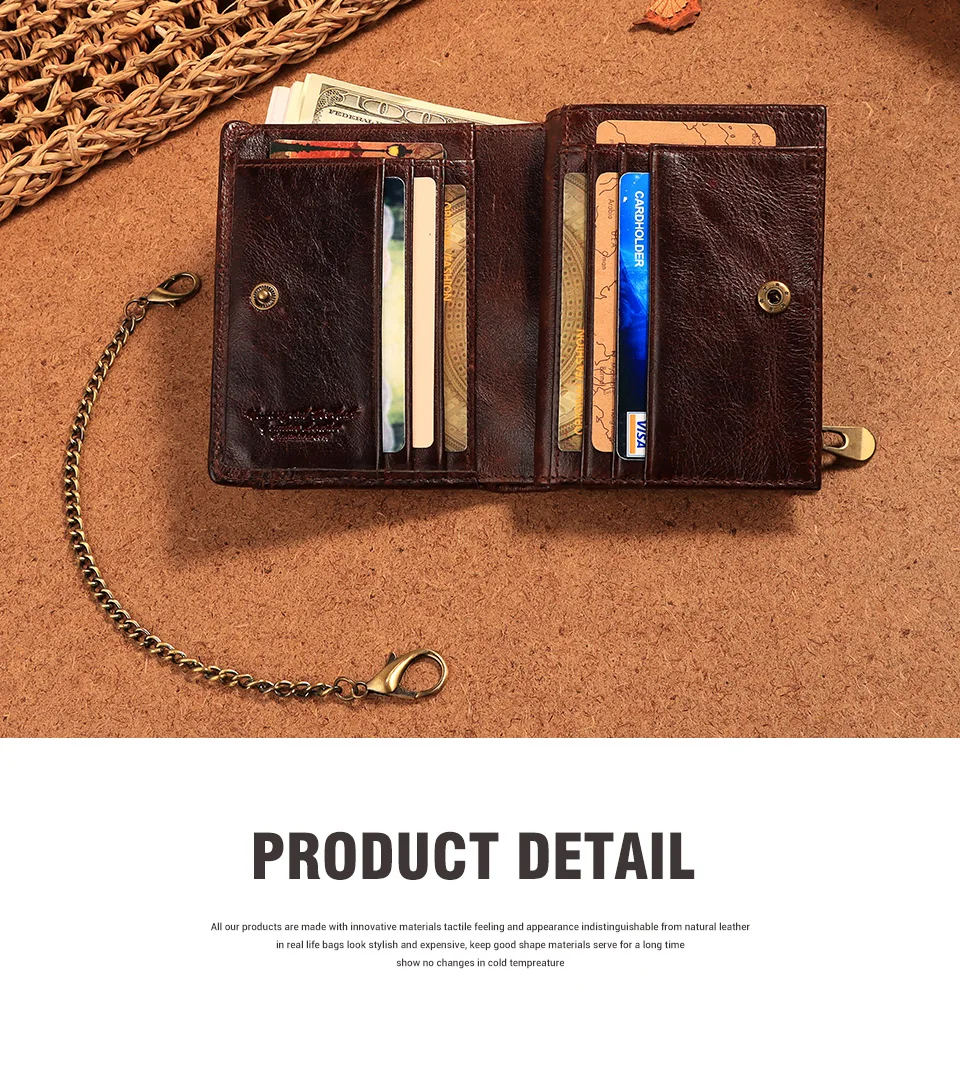 Кошелек мужской короткий из натуральной кожи с Rfid-защитой и цепочкой