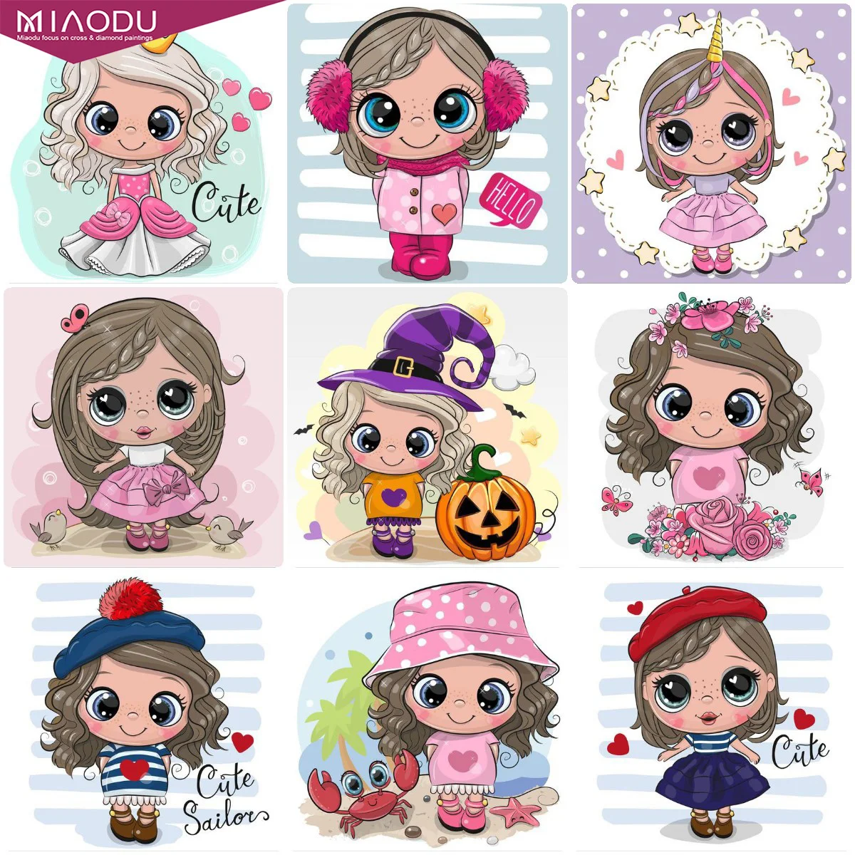 Алмазная вышивка мультяшная девочка, Алмазная мозаика из мультфильм...