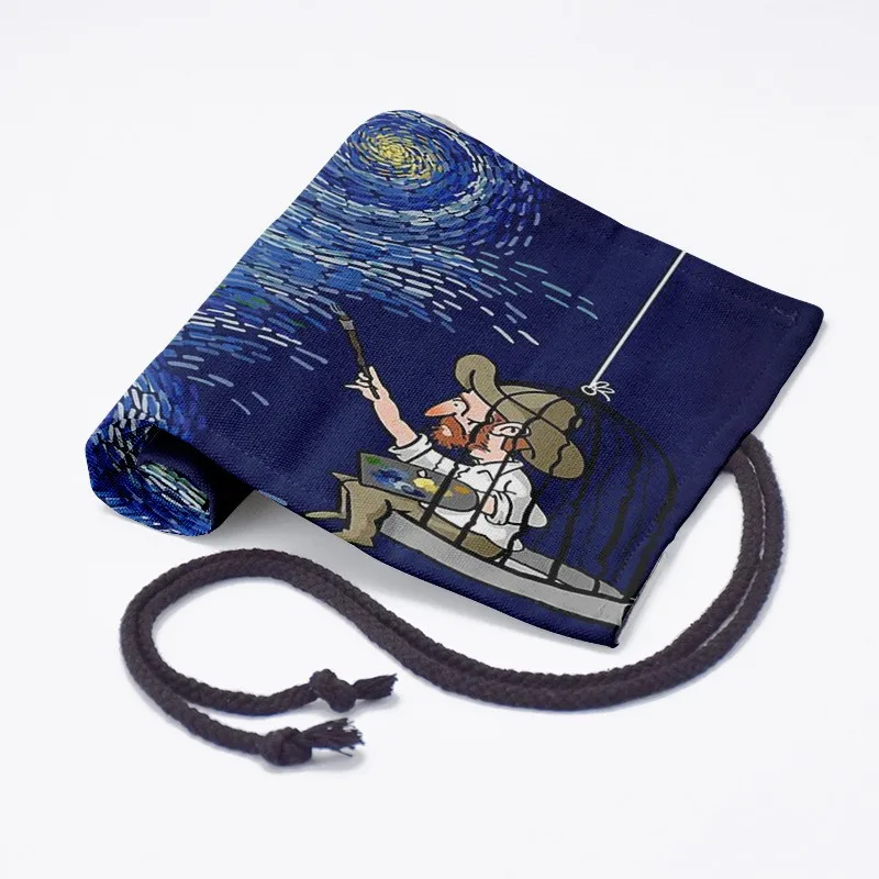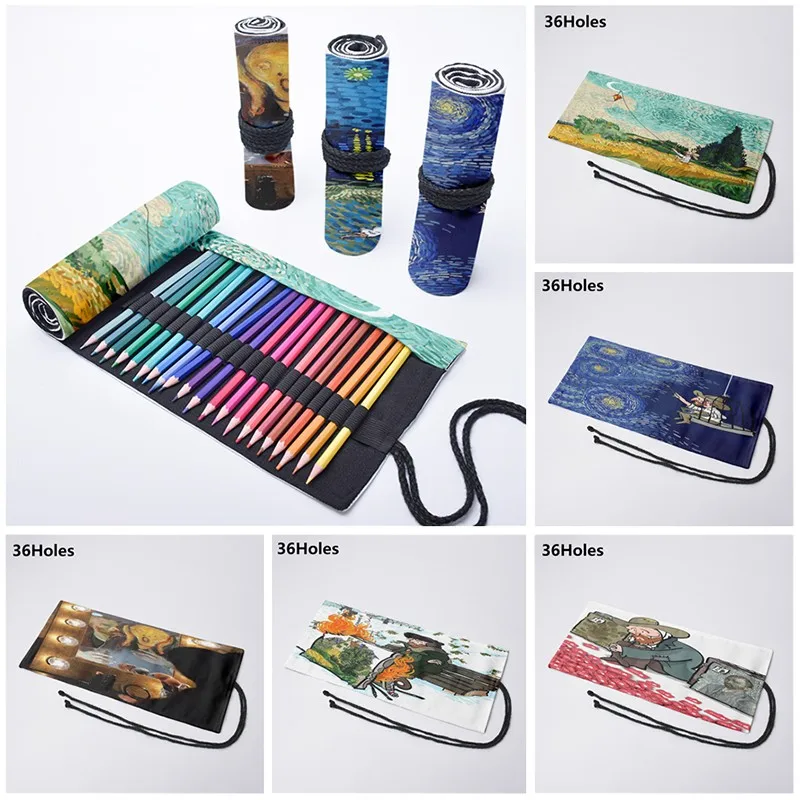 Чехол для карандашей с забавным креативным рисунком унисекс, 122436с отверстиями, Женская Холщовая Сумка для хранения ручек Ван Гога и звездной ночи