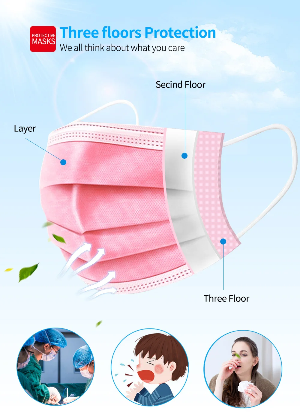 Одноразовая Защитная маска для лица 1050100 шт., 3 слоя