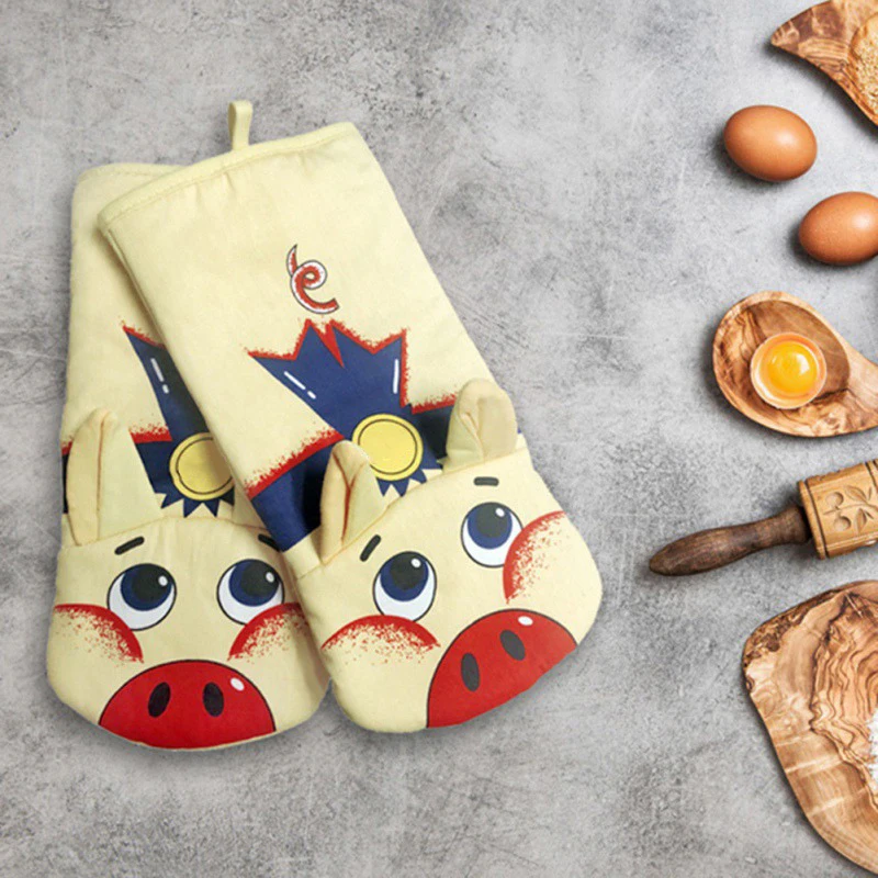 Симпатичные варежки для духовки, Нескользящие хлопковые кухонные перчатки с принтом желтой свиньи для приготовления пищи, микроволновки, перчатки для выпечки, барбекю, манжеты, изоляционные перчатки, 1 шт.