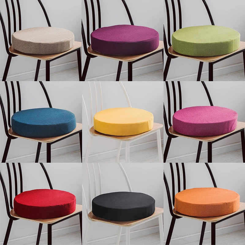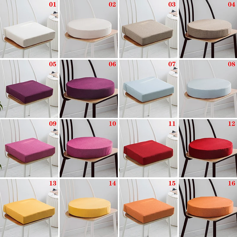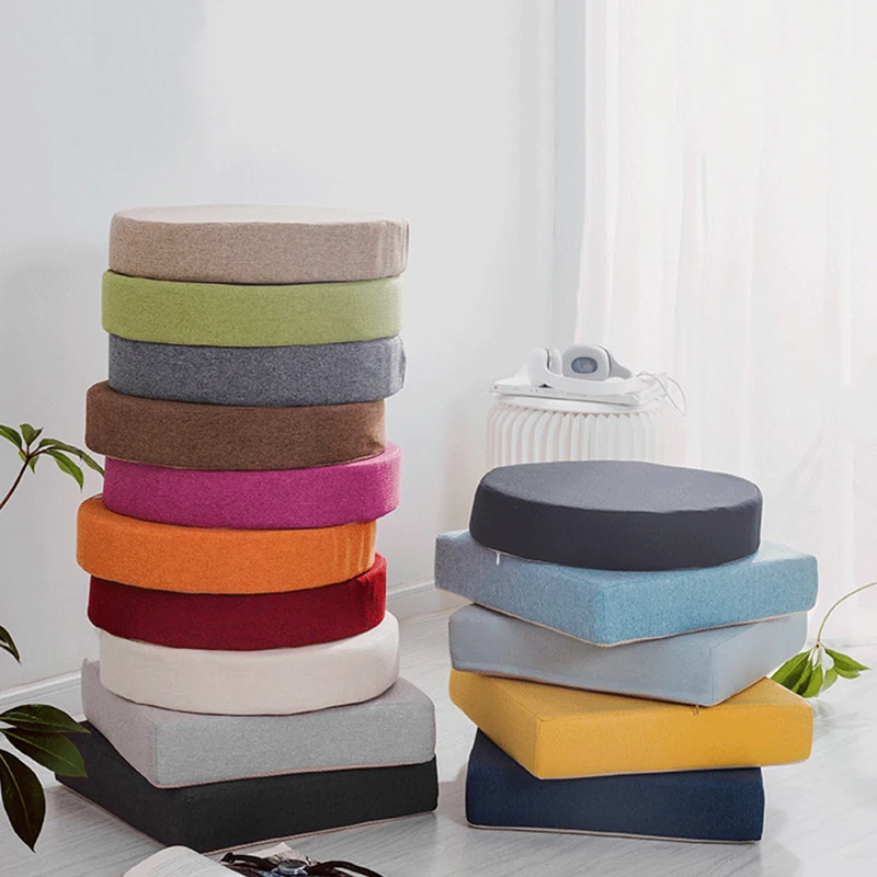 Подушка из пены с эффектом памяти, Круглый квадратный утолщенный губчатый коврик, однотонная льняная ткань, подушка на сиденье, подушка на спинку стула, мягкая защитная подушка двойного назначения