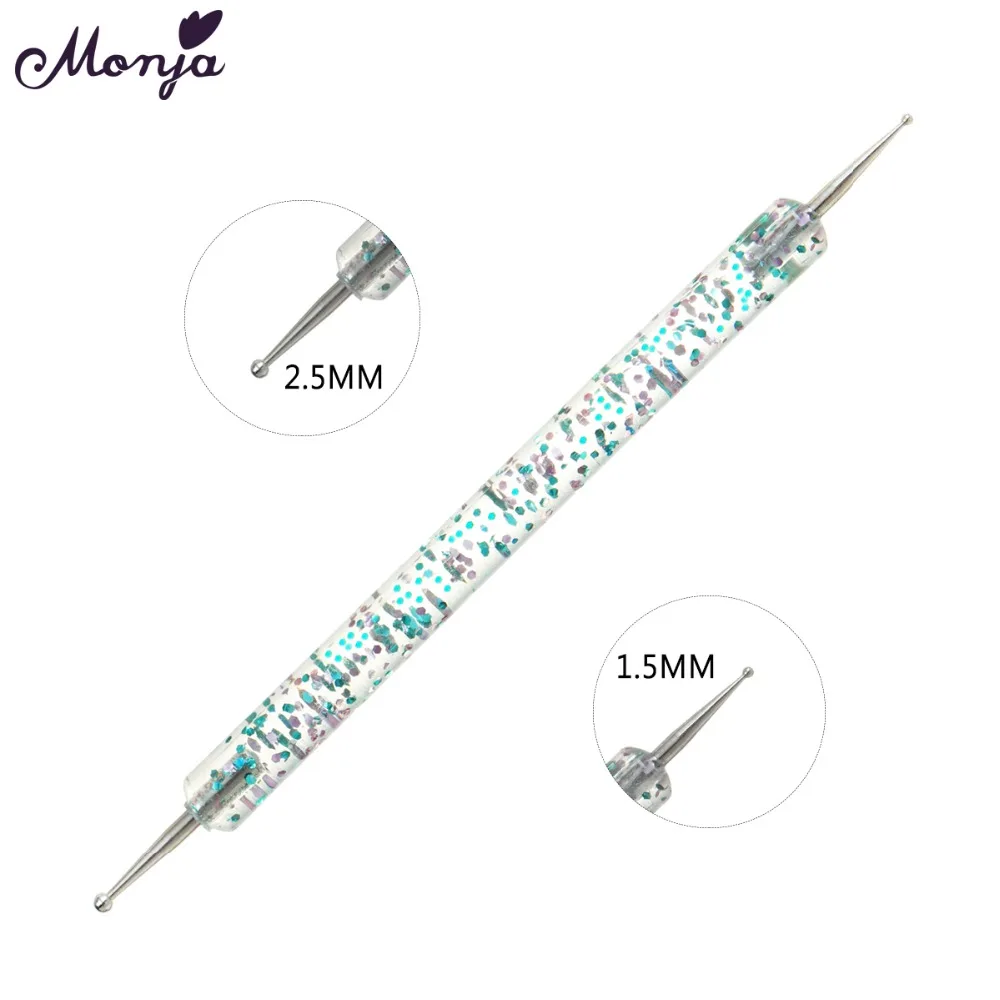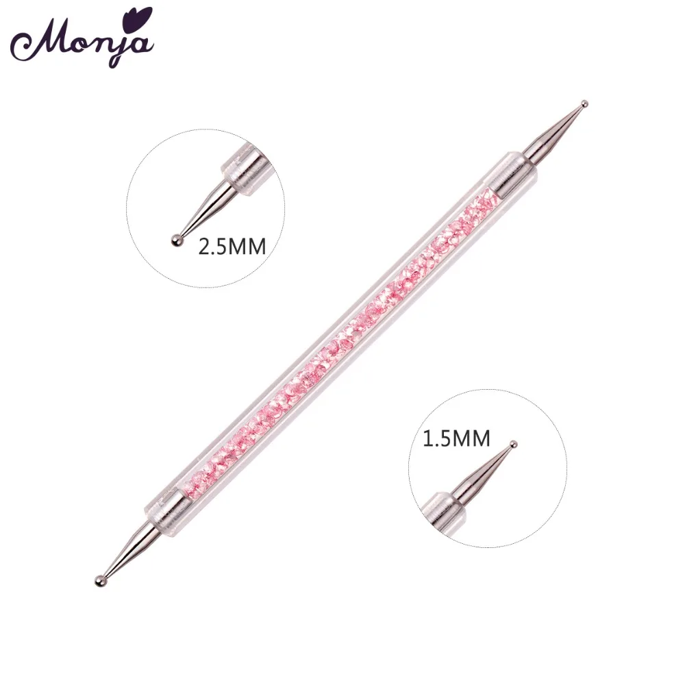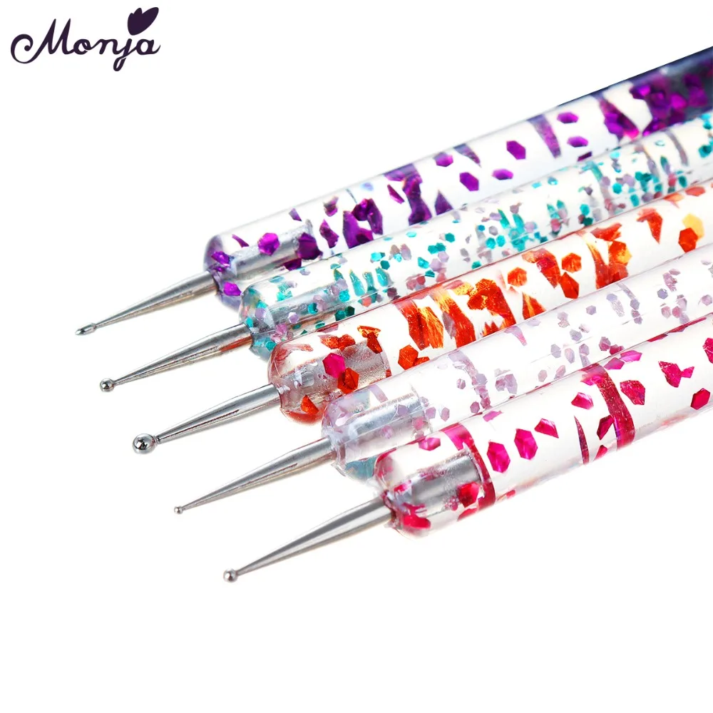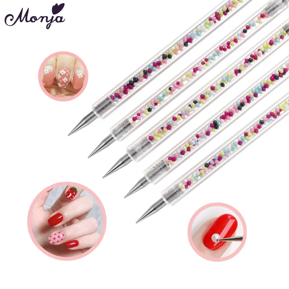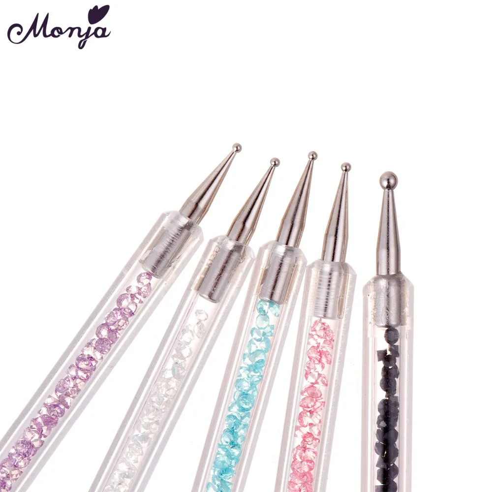 Monja 5 шт.компл. двухсторонняя ручка для дизайна ногтей акриловый лайнер для рисования кисть для цветов Стразы Кристалл УФ-гель для рисования инструмент для маникюра