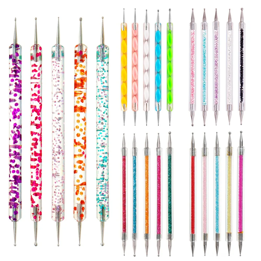 5 шт.компл., двусторонняя точечная ручка для дизайна ногтей, акрило...