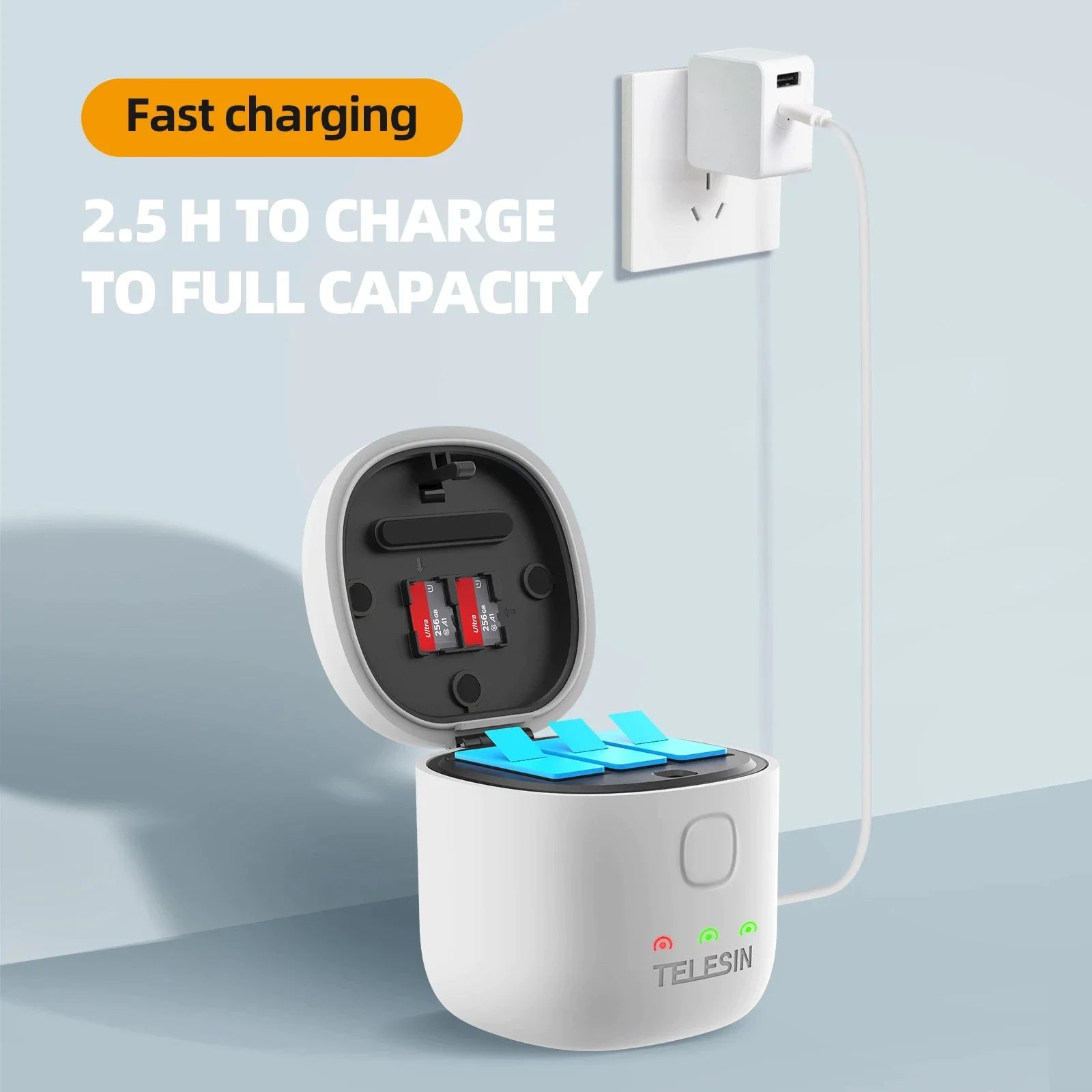 Быстрое зарядное устройство для аккумуляторов GoPro 10 9, 3 слота, контейнер для хранения аккумуляторов, 1750 мАч, литий-ионный аккумулятор, чехол для зарядки для быстрой экшн-камеры