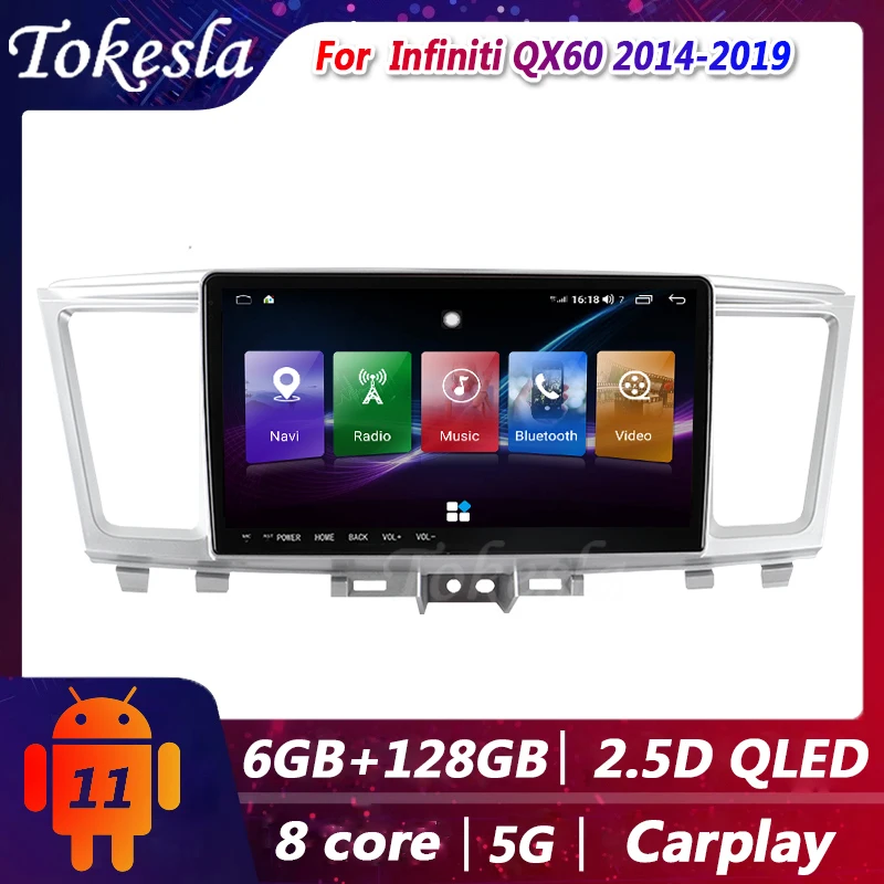 Автомобильное радио Tokesla 2 din, gps, android 11, для Infiniti QX60, видео, центральный, мультимедиа, DVD, автомобильные плееры, навигация 5G, Bluetooth