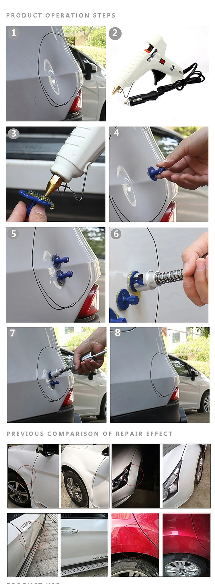 2. Операция проста и легка в управлении. Каждый может легко удалить вмятины самостоятельно