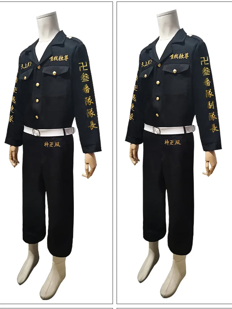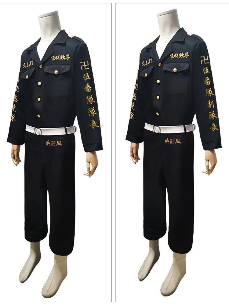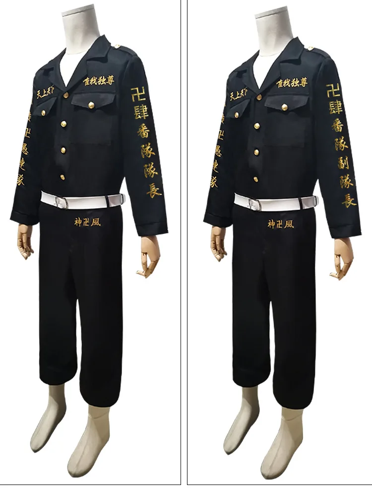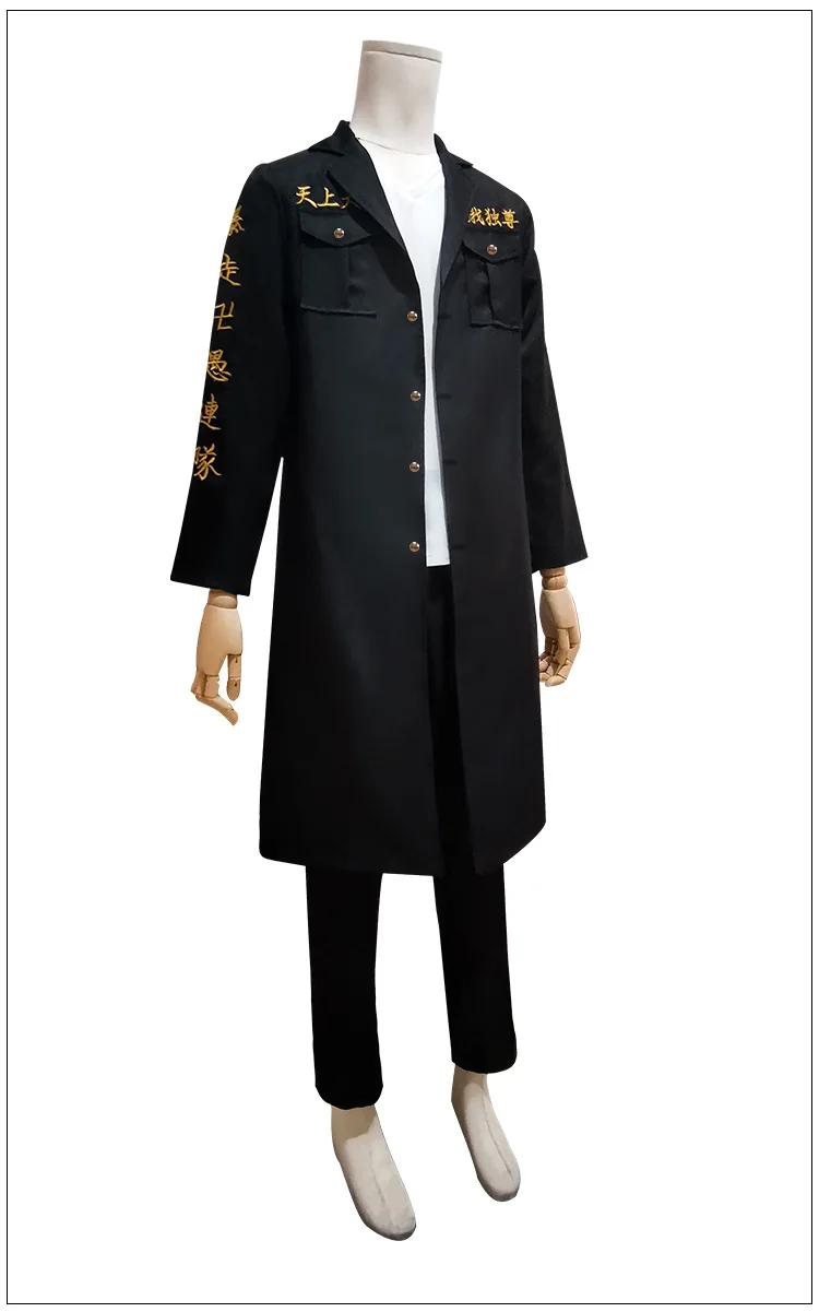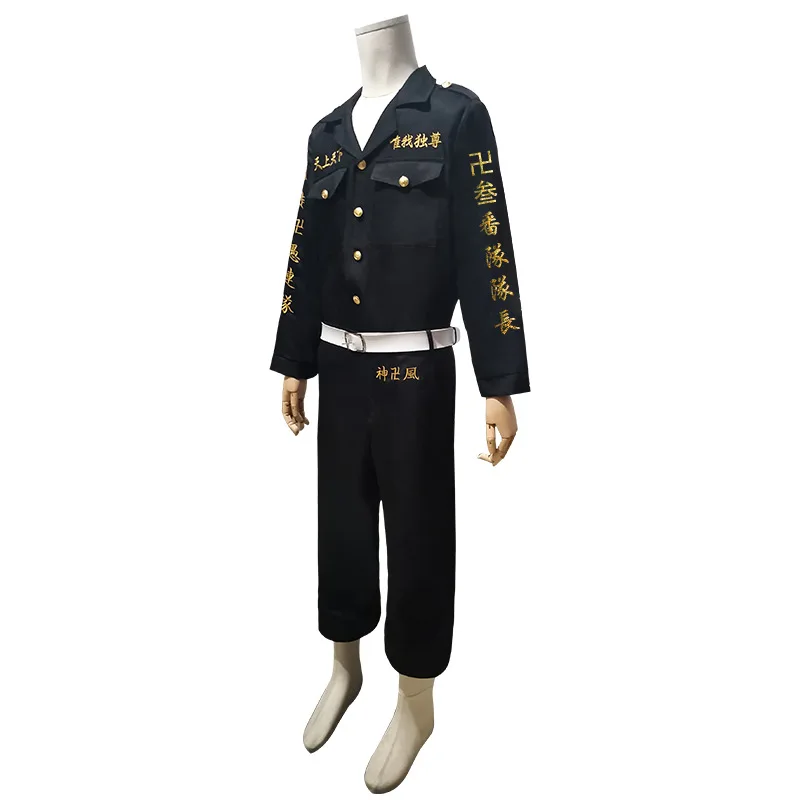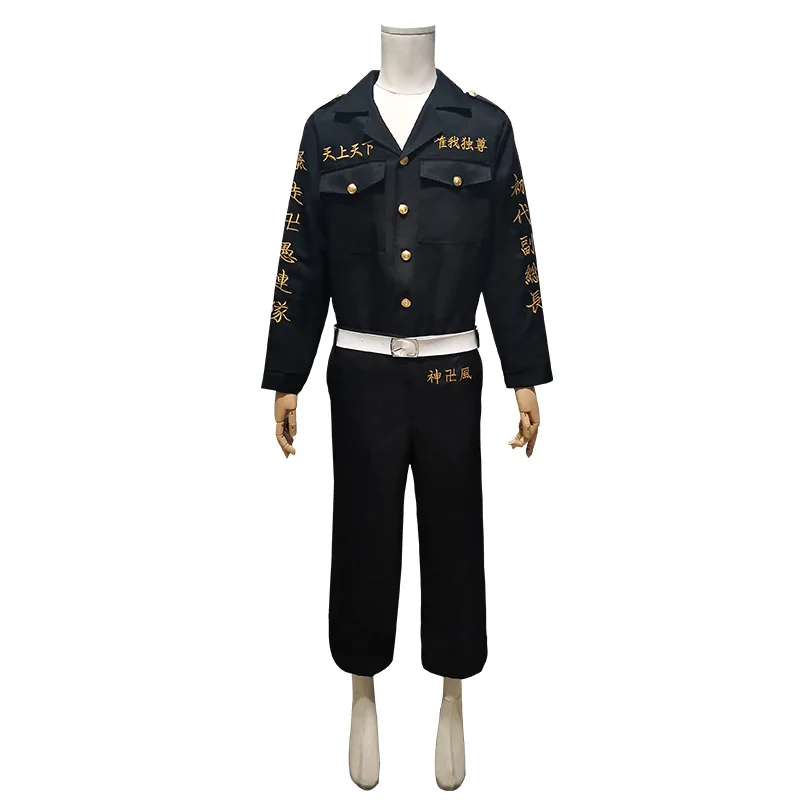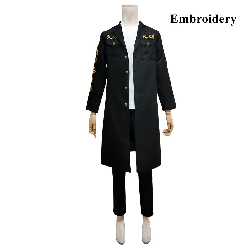 Аниме Токийский Мстители Косплей черная рубашка брюки вышивка Униформа парик Аниме Косплей Костюм Хэллоуин наряд для женщин яКостюм Manjiro Sano включает в себя: Тренч + брюки + футболкуДругие костюмы включают: топ + брюки + ремень