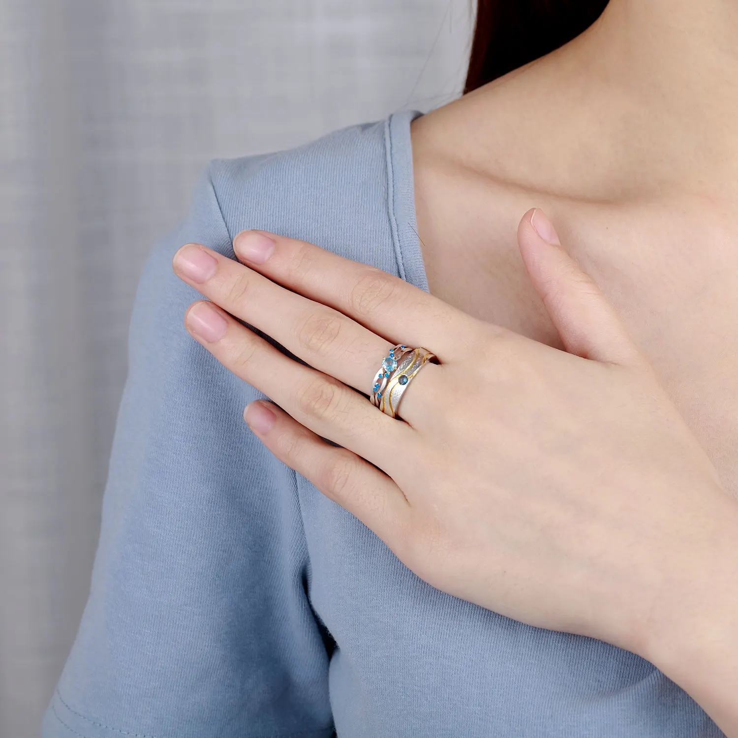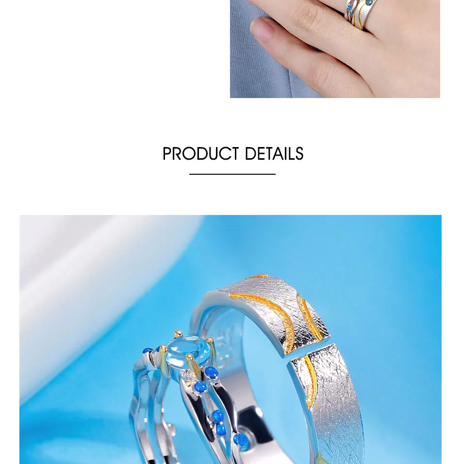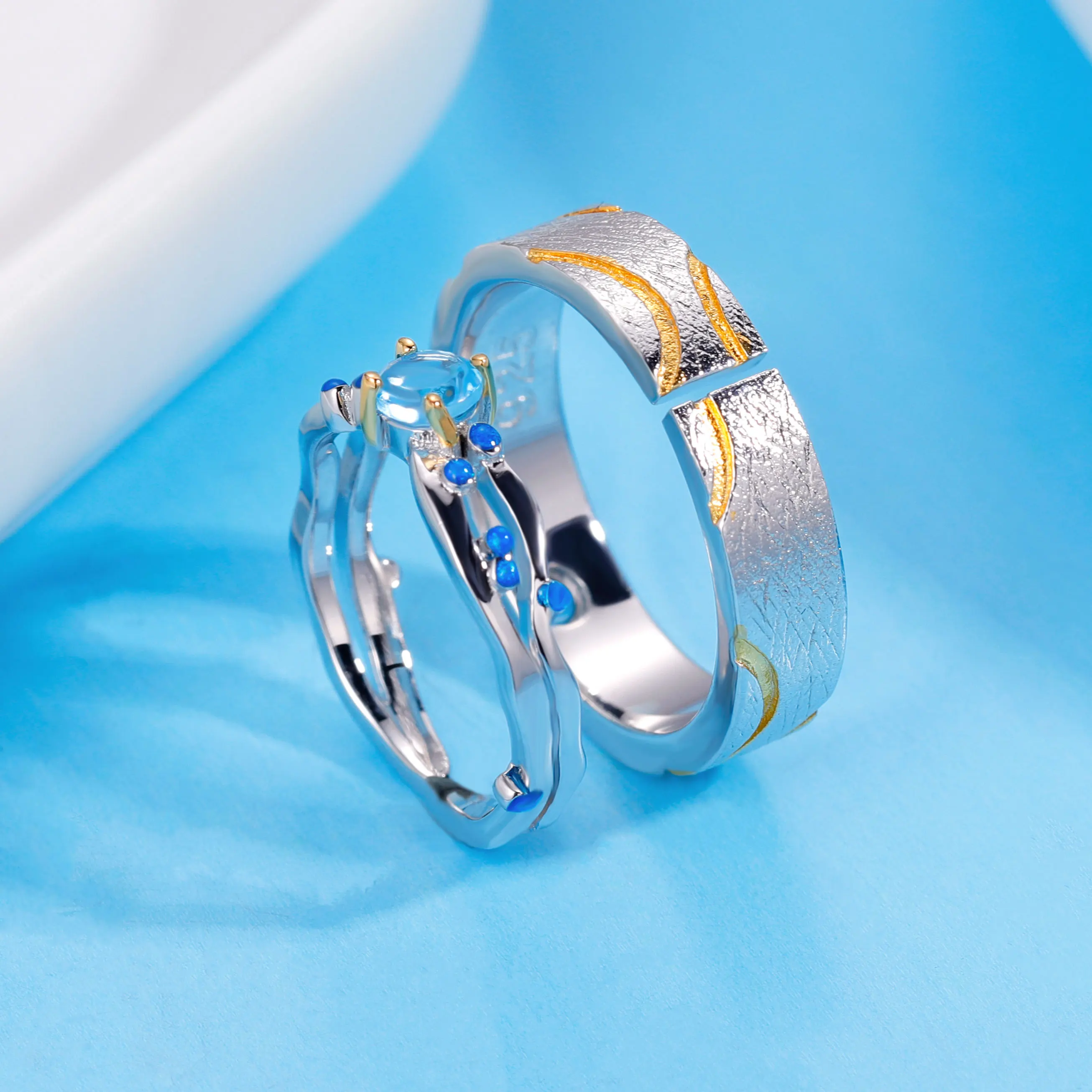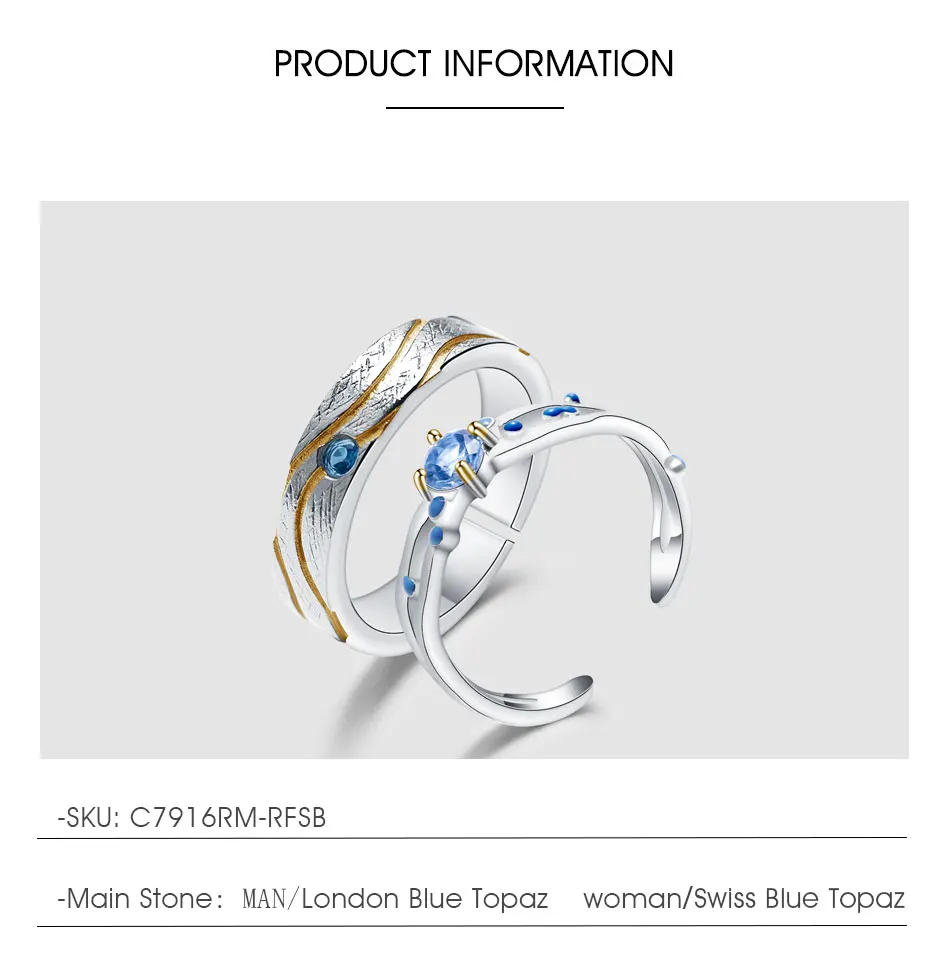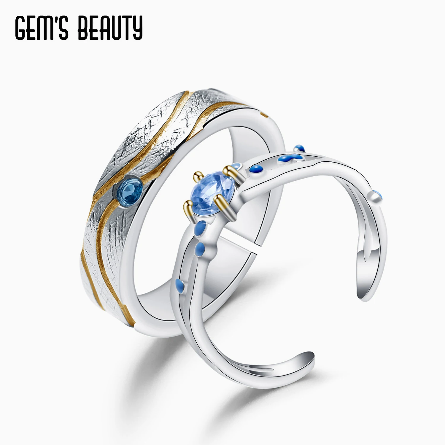 GEM'S BEAUTY 925 пробы серебряные парные кольца набор натуральный синий топаз ручная работа эмаль регулируемые открытые кольца свадебный набор