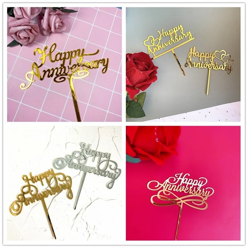 Золотистый, серебристый Топпер для торта на годовщину, акриловая вс...