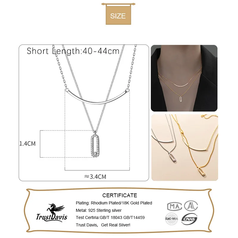 TrustDavis Настоящее серебро 925 пробы, модное двухуровневое ожерелье на цепочке с камнем для женщин, ювелирное изделие на свадьбу, День Святого Валентина DA2323