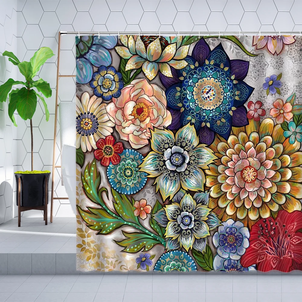 Богемная занавеска для душа дзен, водонепроницаемая ткань, цветная ...