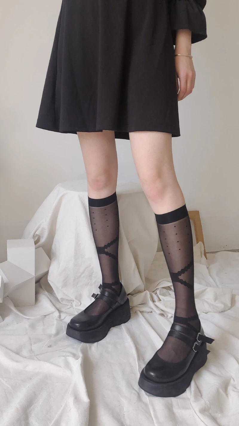 Женские гольфы выше колена для девочек, кружевные сетчатые чулки, н...