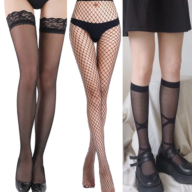 Сексуальные ажурные чулки, колготки, черные ажурные эластичные чулк...