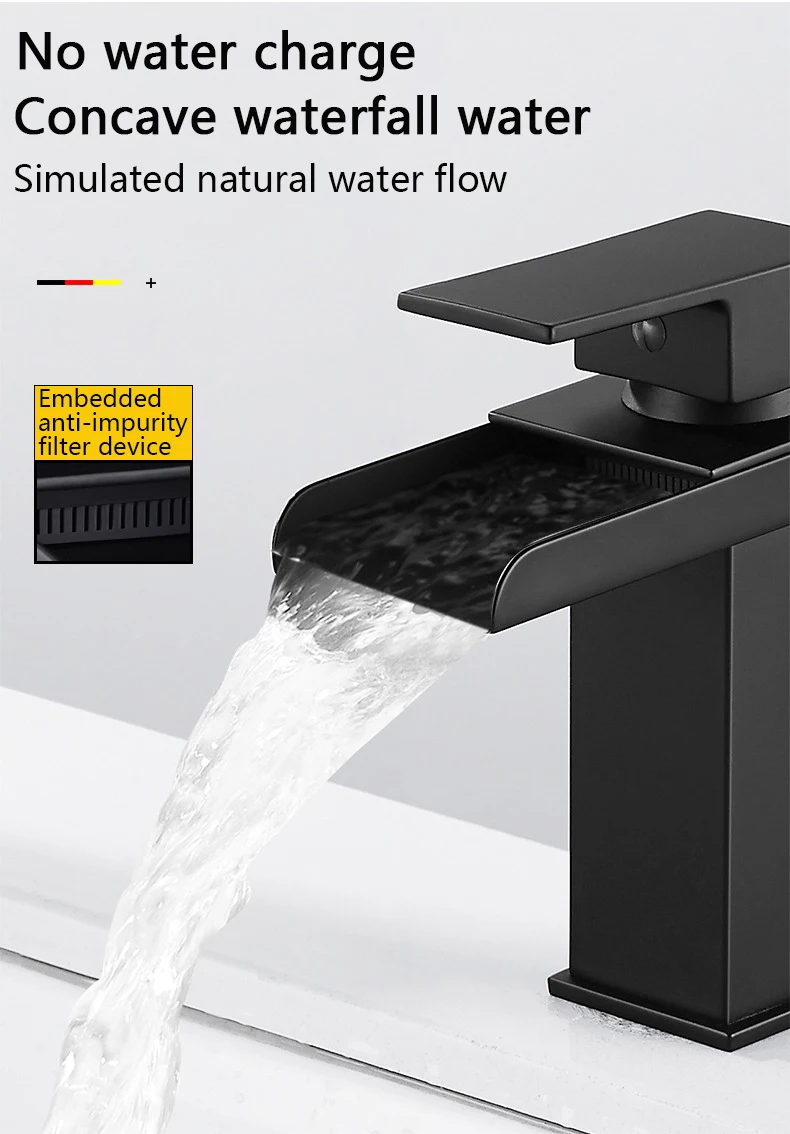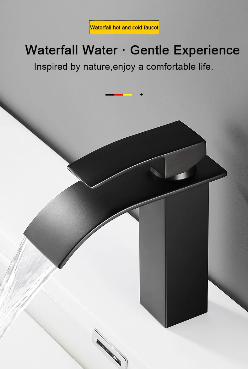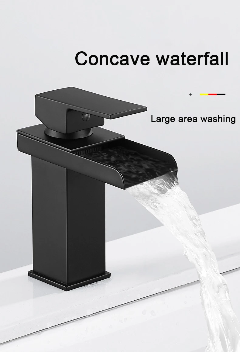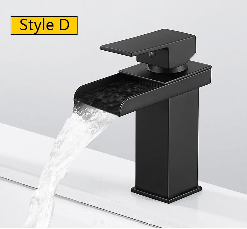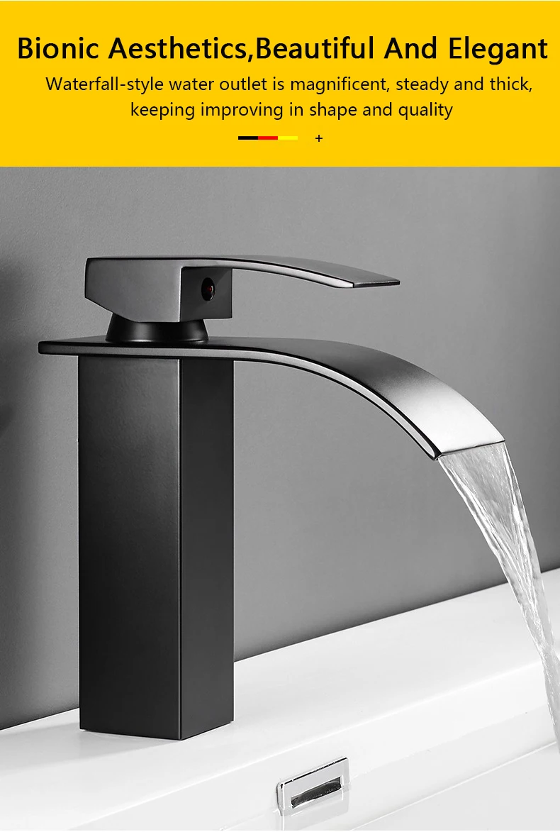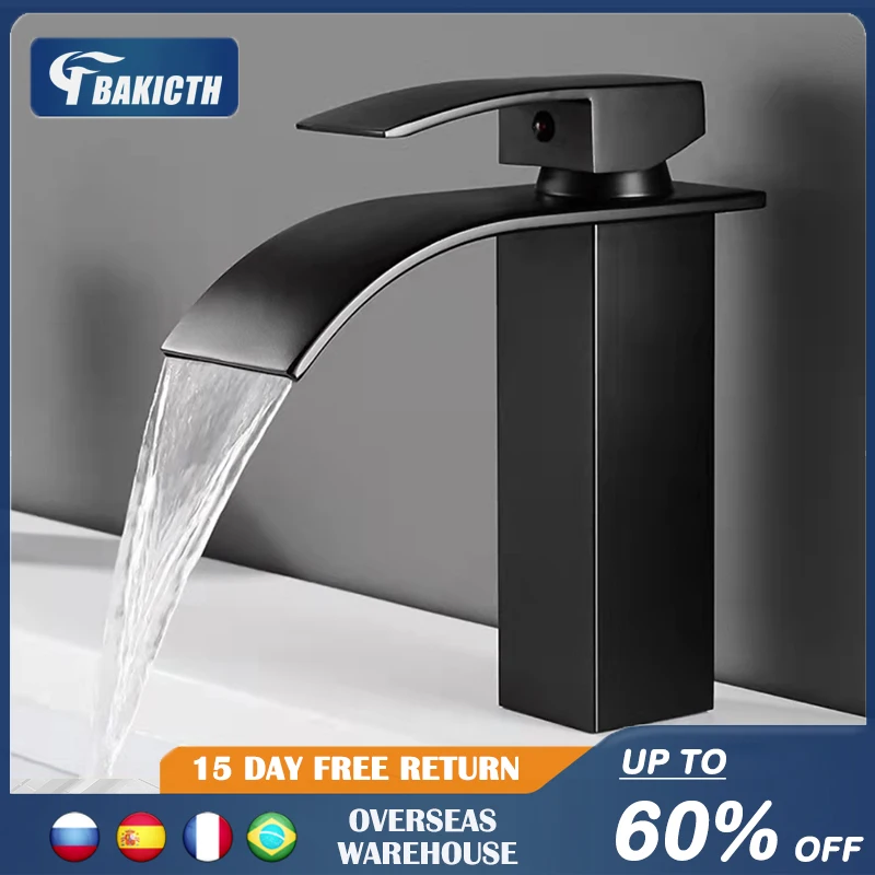 Смеситель для раковины Bakicth с водопадом, латунный кран для ванны, черный цвет, для горячей и холодной воды, крепление на раковину