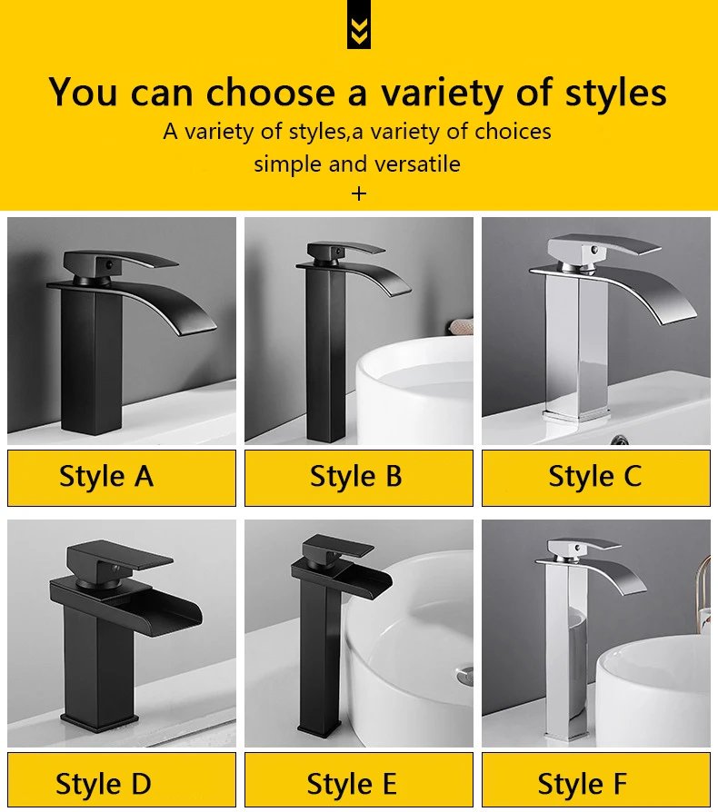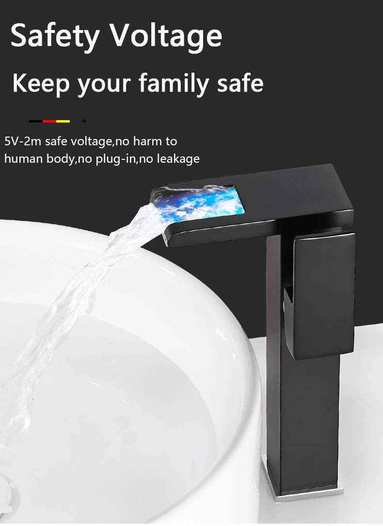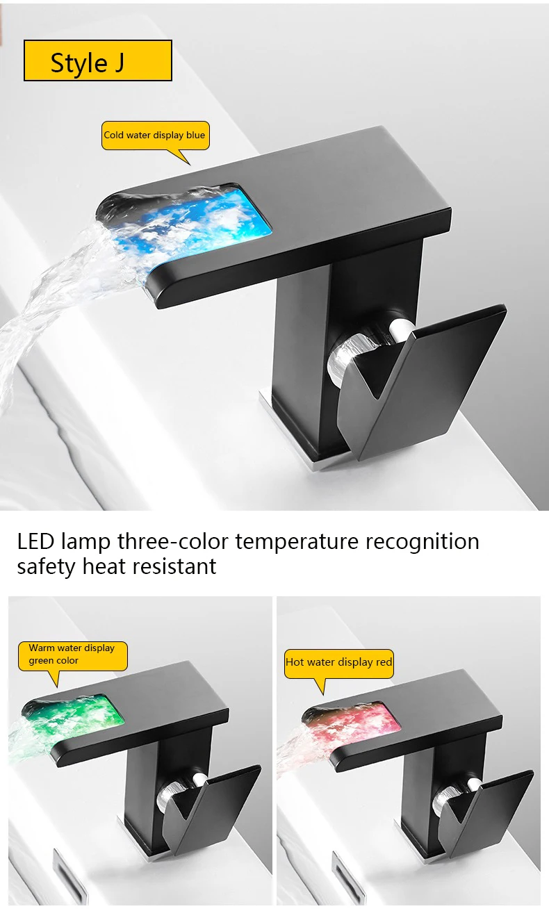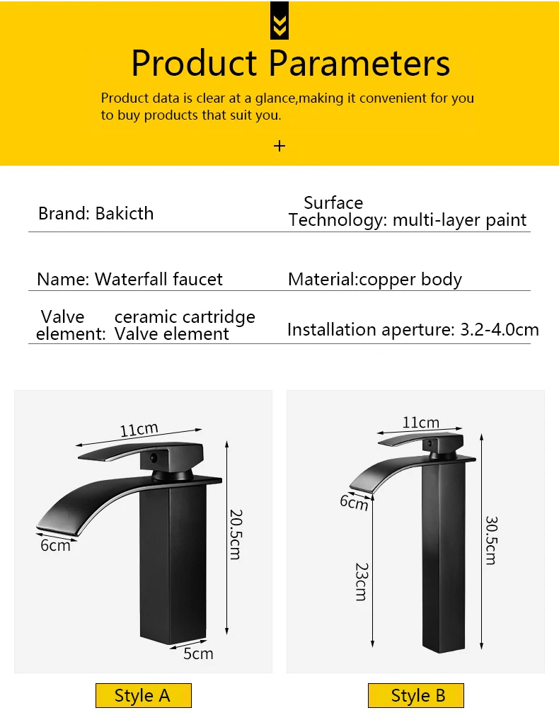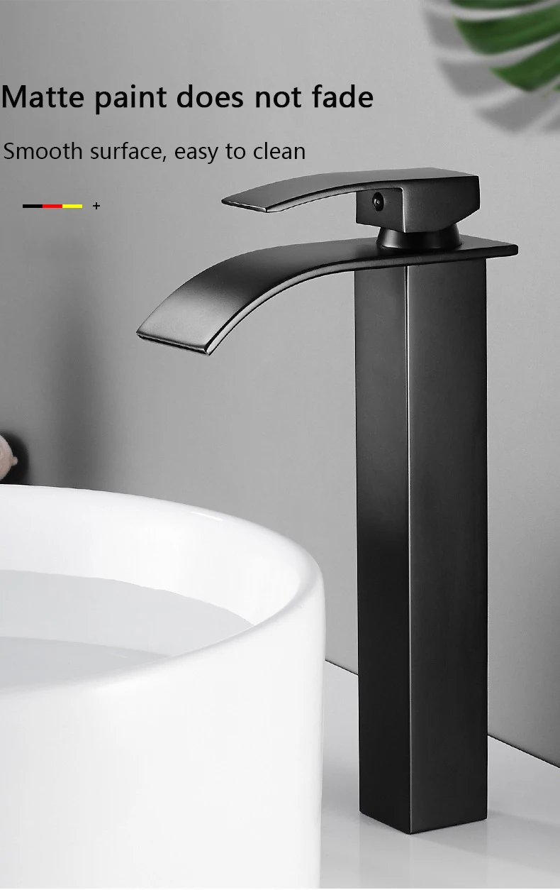 Смеситель для раковины Bakicth с водопадом, латунный кран для ванны, черный цвет, для горячей и холодной воды, крепление на раковину
