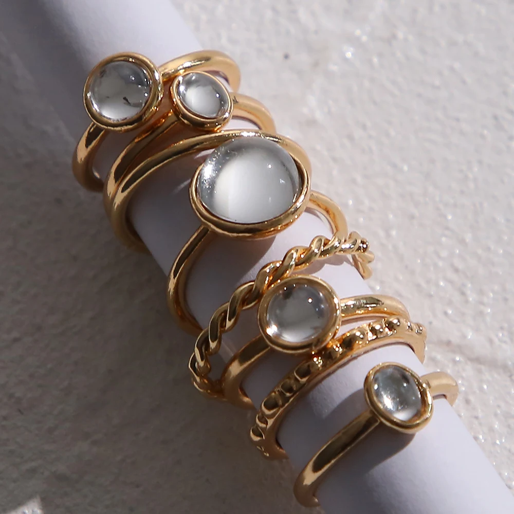 Новинка, Корея, 8 шт.компл., винтажный красочный камень, металлическая цепь, модные геометрические Популярные Кольца для женщин и девушек, ювелирные изделия