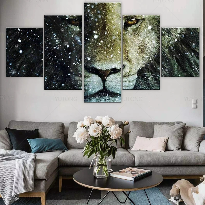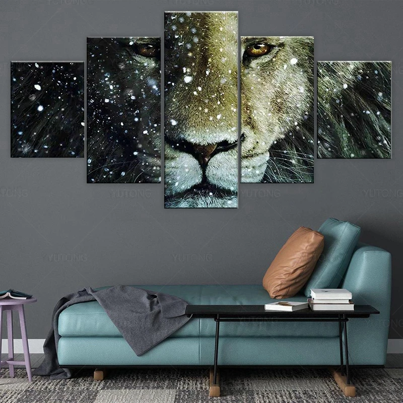 Холст с рамкой 5 шт. Лев снег Нарния дикая Куадрос настенные художественные плакаты картины Домашний декор для гостиной украшение