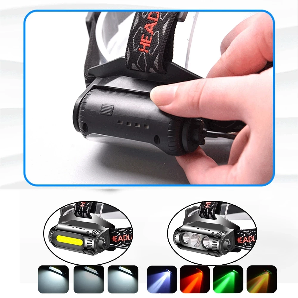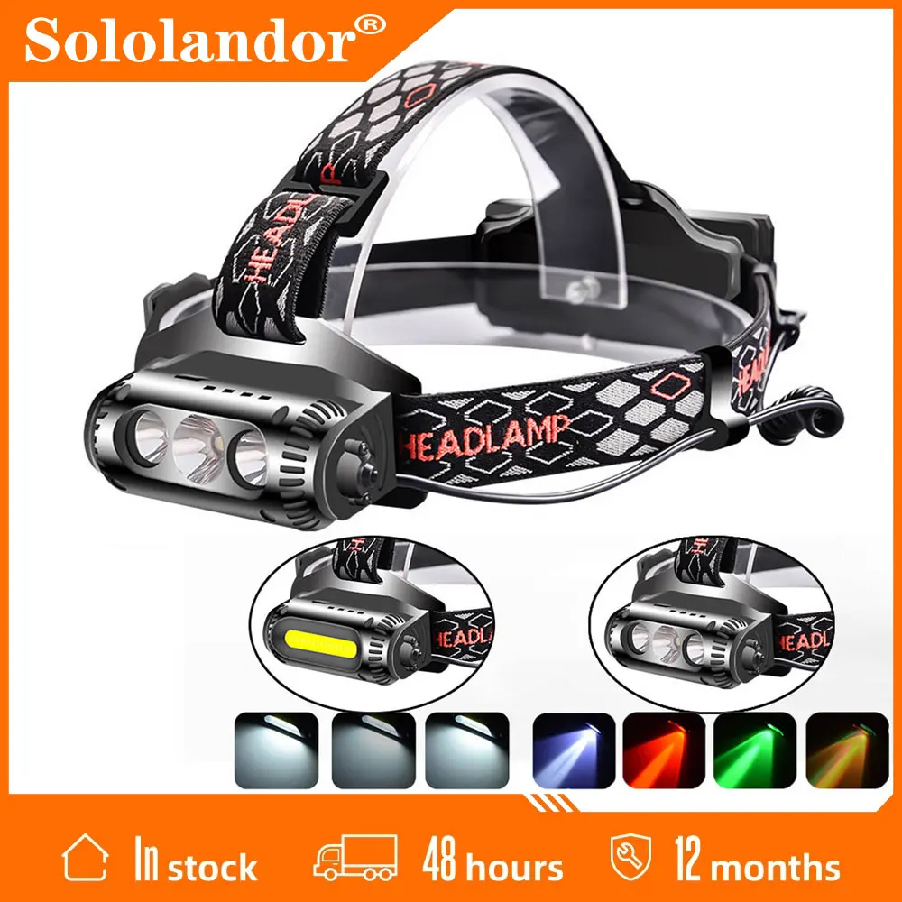 Светодиодный налобный фонарь Sololandor COB T6, 8 режимов, XPE, зеленый, красный светодиодный налобный фонарь, Перезаряжаемый 18650 Водонепроницаемый налобный фонарь для кемпинга и охоты