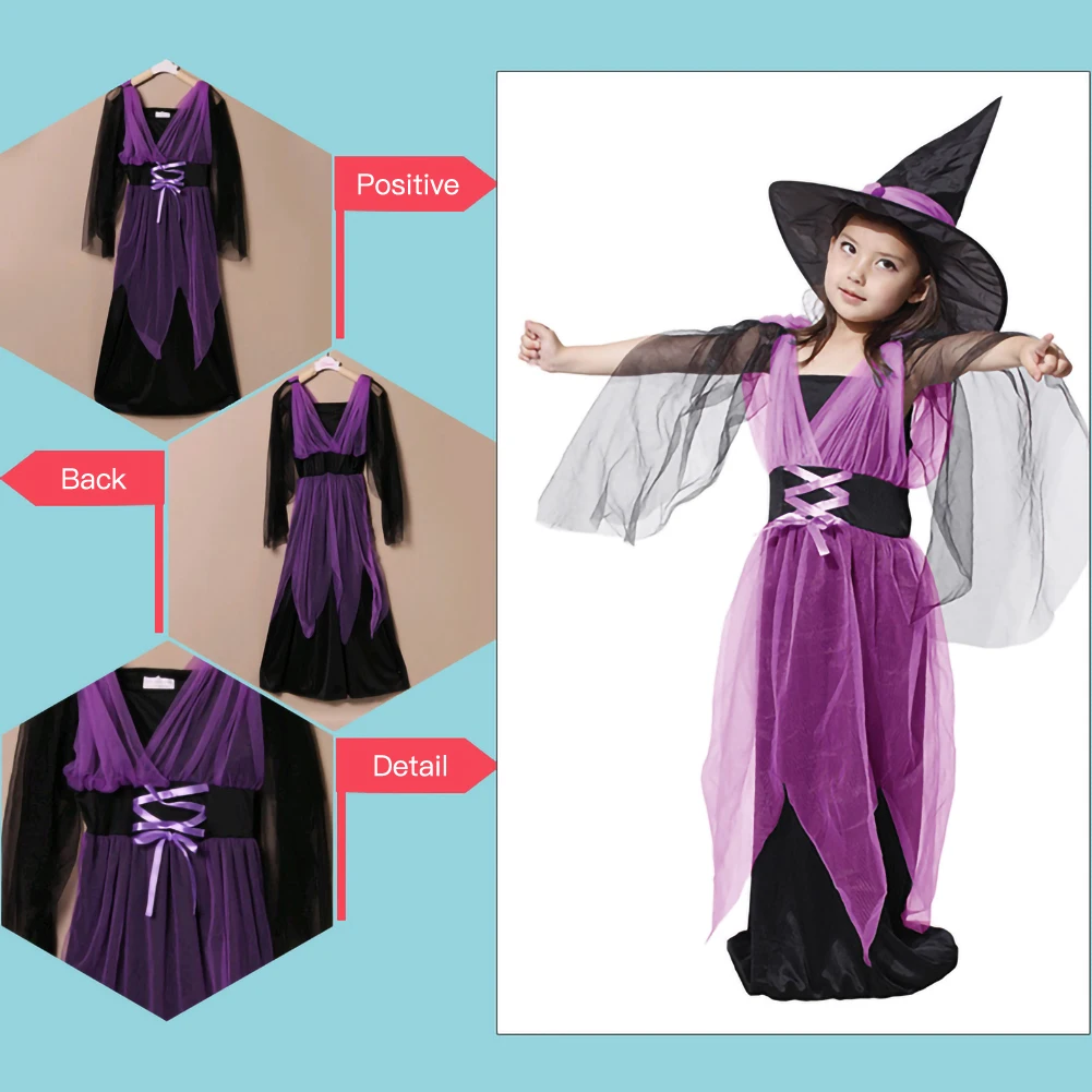 * 2. Тип одежды: детское платье ведьмы на Хэллоуин для девочек + шляпа; Детские вечерние платья принцессы; Карнавальный костюм