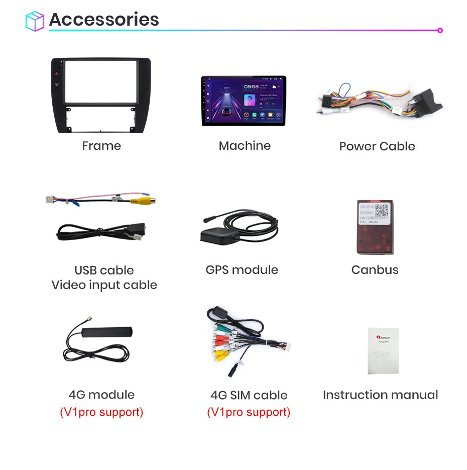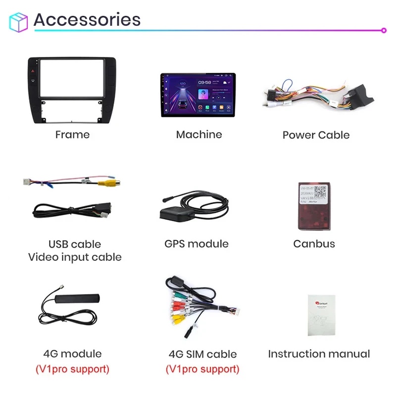 1. Штифт-штифт: Кабель питания Junsun radio' является штифтом для штифта, прост в установке;2. Встроенный Carplay/ Android Auto: Поддержка версии V1Pro, просто используйте кабель телефона, подключите его, стабильный и простой в использовании; (V1 поддерживает только Android Auto, но нужно покупать; V1C не поддерживает)3. Поддержка подголовника: только поддержка версии Junsun V1;