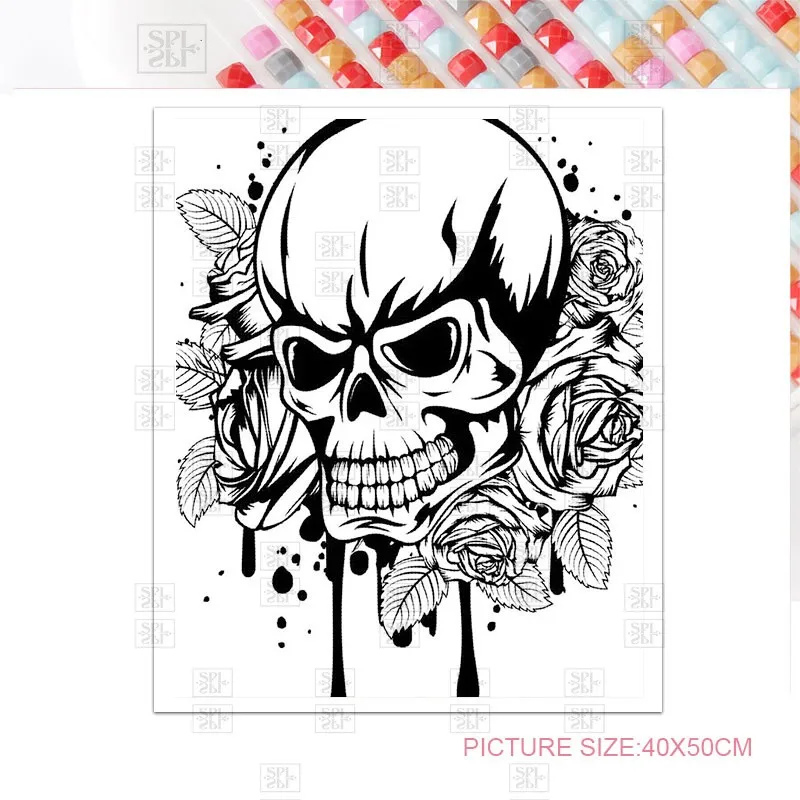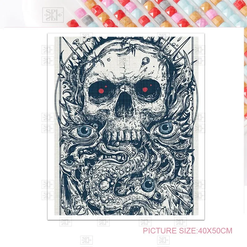 Алмазная 5D картина с черепом, полная картина стразы, алмазная вышивка, страшная картина, блестящая картина, скелет, подарок ручной работы