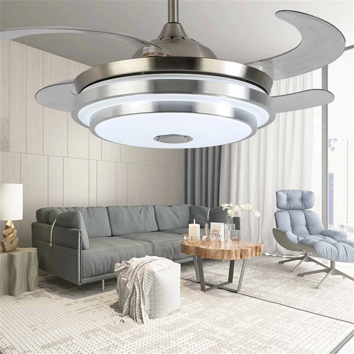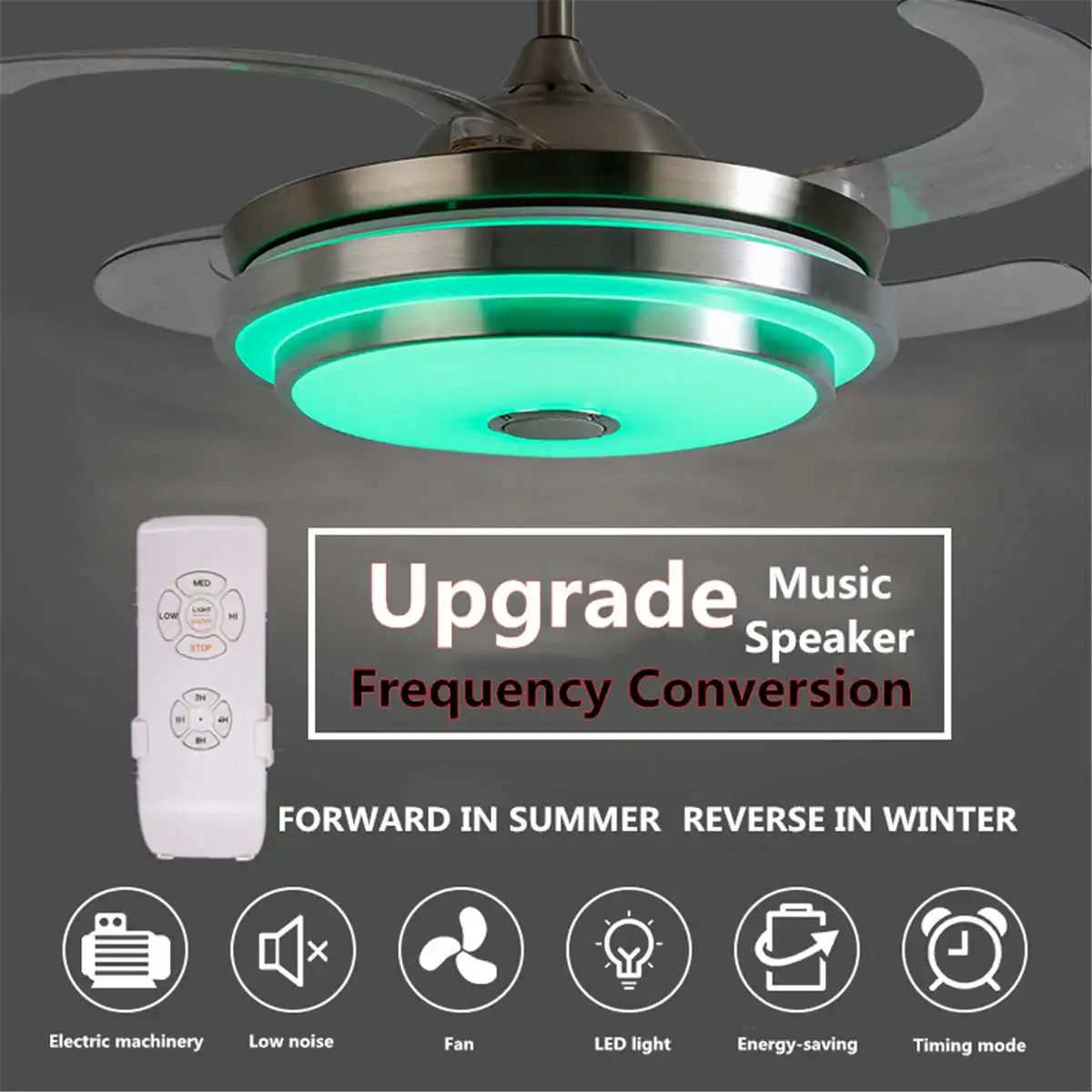 Особенности:-Современный Креативный минималистичный дизайн, это не только потолочный вентилятор, но и музыкальный динамик. Можно использовать приложение для управления громкостью, 7 цветов светильник, также поддерживает режим синхронизации.-С пультом дистанционного управления, также поддерживает режим синхронизации.-Вентилятор имеет три скорости, вы можете выбрать, какая скорость ветра вам нравится.-Используется полночастотный электромагнитный гудок. Объемный объемный эффект.-Энергосберегающий светодиодный чип, импортный светодиодный чип, без бликов для глаз, наслаждайтесь ярким и красочным освещением настроения, которое безопасно для глаз и энергоэффективно.-Подходит для различных сцен: подходит для украшения гостиной, спальни, отдыха и развлечений, вестибюля отеля, гостиничного зала, коридора и т. д.