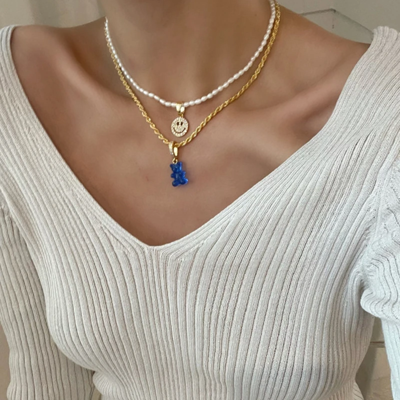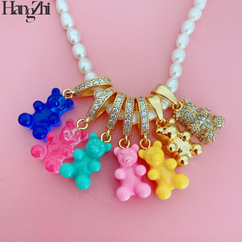 Новинка 2021, модный разноцветный полимерный милый медведь HangZhi, кулон со смайликом, блестящий циркон, жемчужное ожерелье для женщин, мужчин, ювелирные изделия для вечеринок
