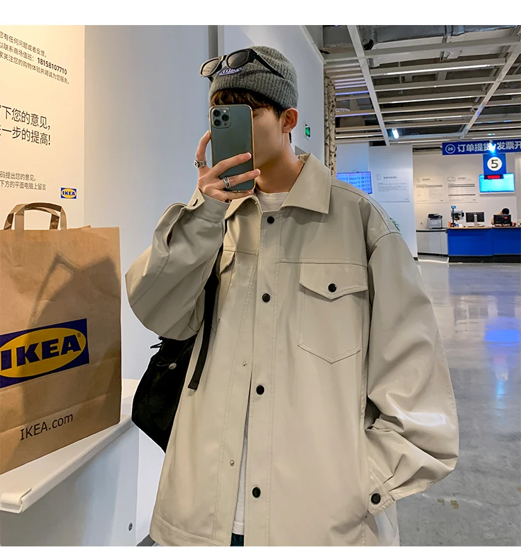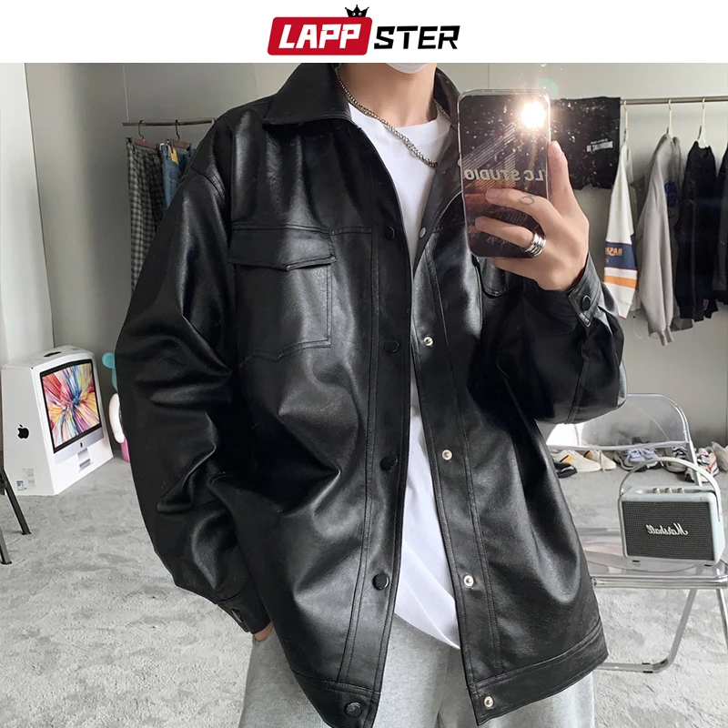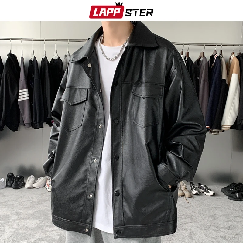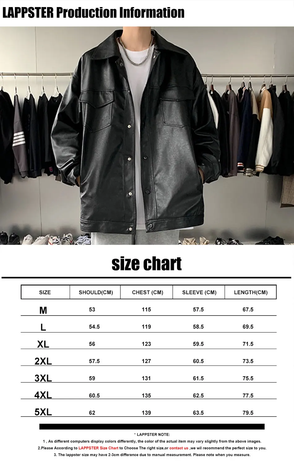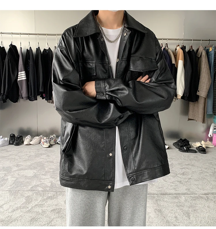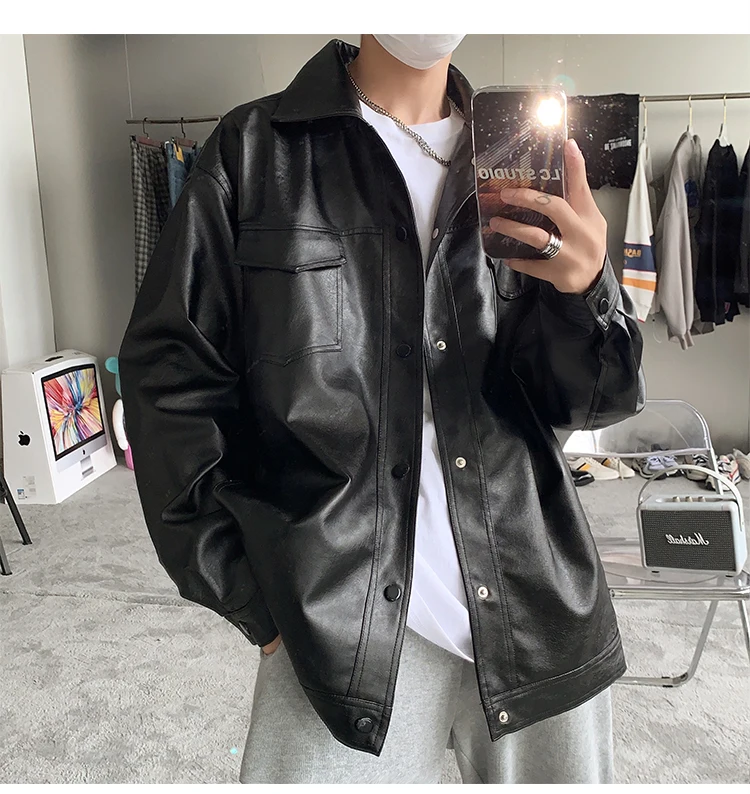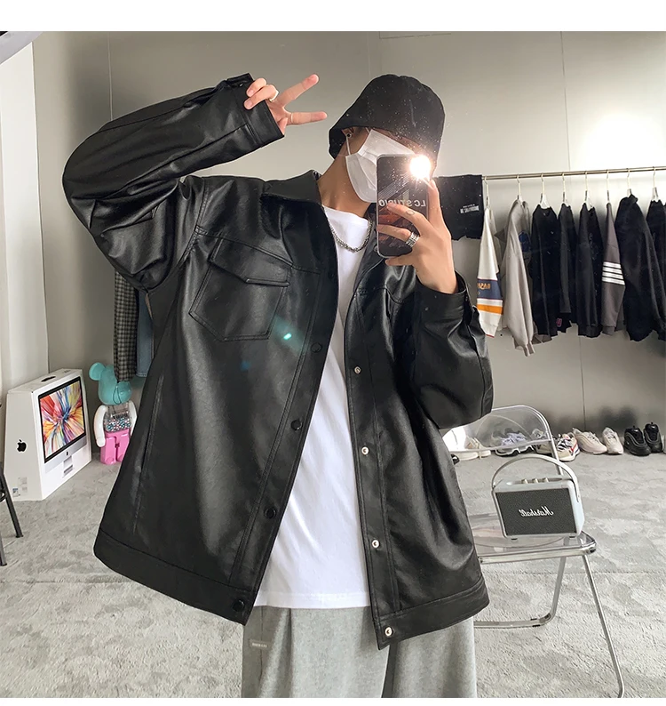 Мужская кожаная куртка в стиле харадзюку, большого размера