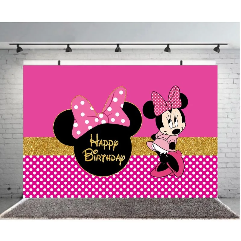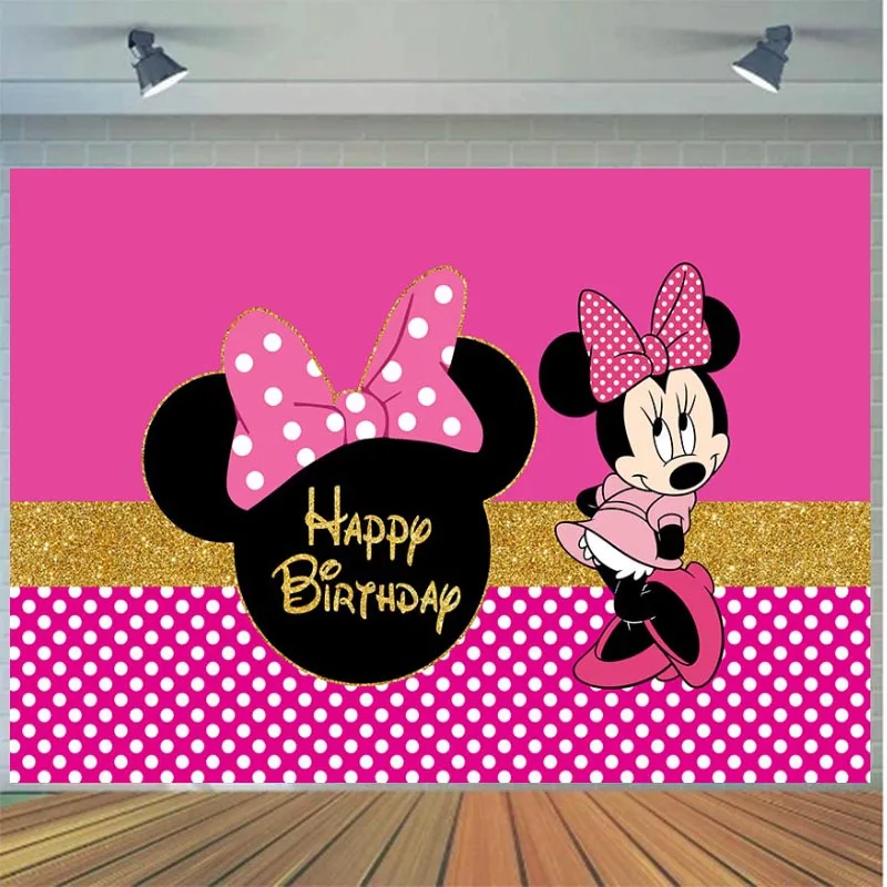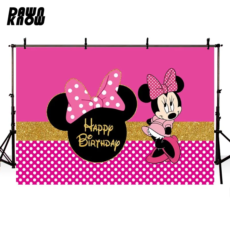 Фон для фотосъемки на заказ с изображением розовой мыши, украшение для детского дня рождения, гобелен для фотостудии