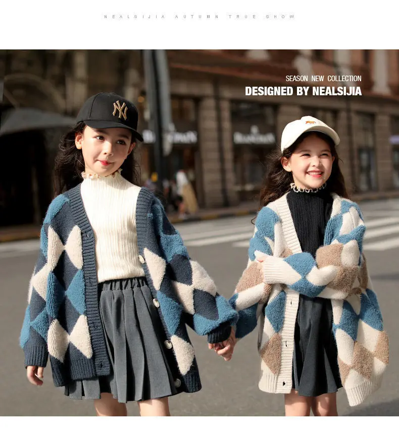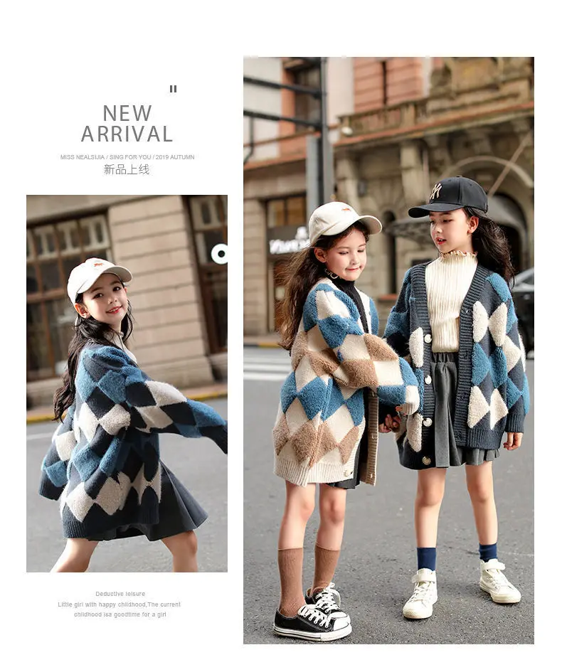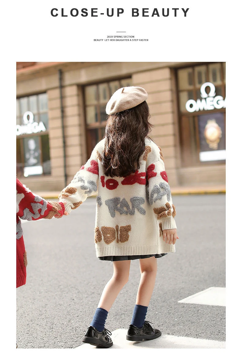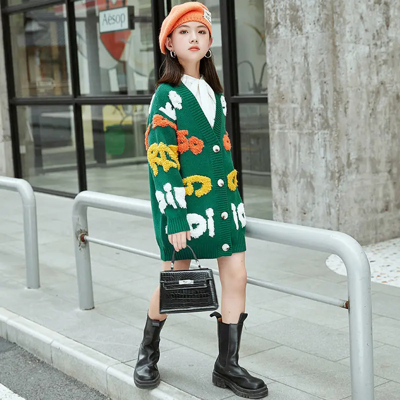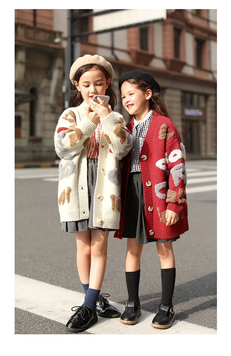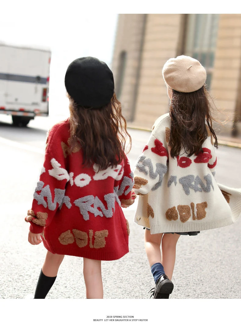 Свитер для девочек, кардиган, зимняя детская Рождественская вязаная верхняя одежда, теплые детские свободные повседневные свитеры, одежда для девочек 12 13 14 лет