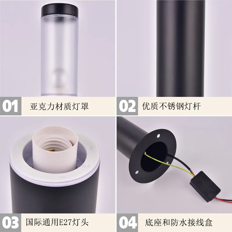 Уличная Светодиодная лампа для газона, столбик из нержавеющей стали черного и серебристого цвета, водонепроницаемый садовый светильник для дорожек, ландшафтный светильник для газона