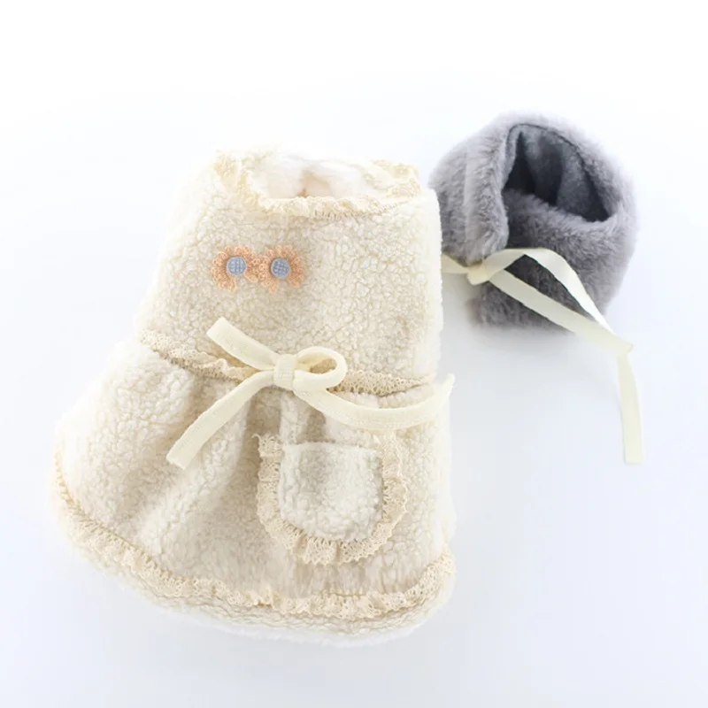 Зимняя одежда для собак, теплое флисовое платье для собаки, пальто с нашивкой в виде маленького подсолнуха, одежда принцессы