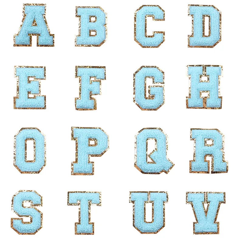 Голубое полотенце сделай сам, вышитые буквы, нашивка, нашивка, полоса, значок, алфавит, блестки, нашивки для детской одежды, нашивка с узором