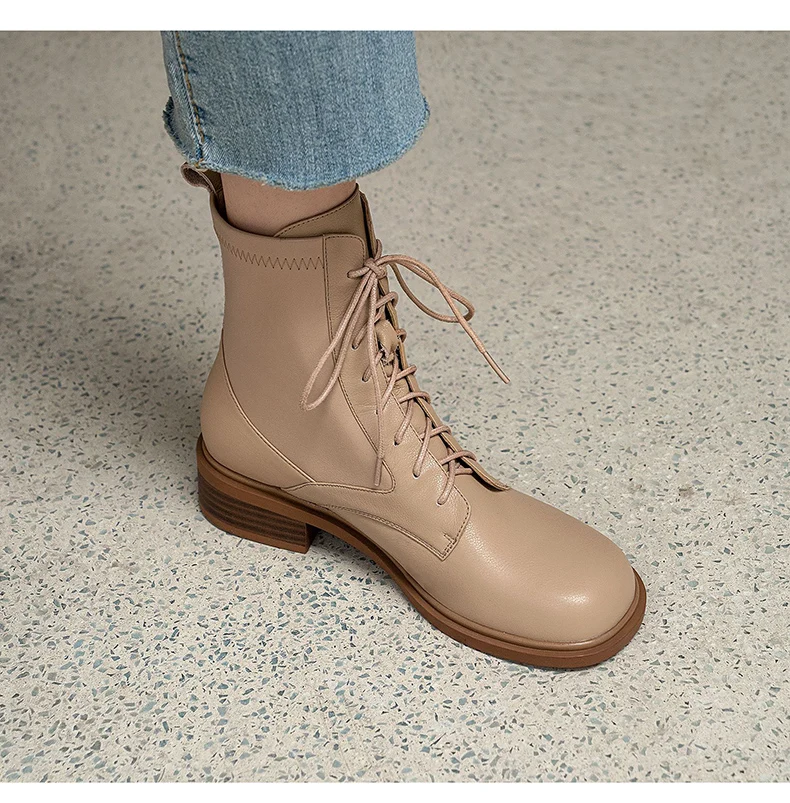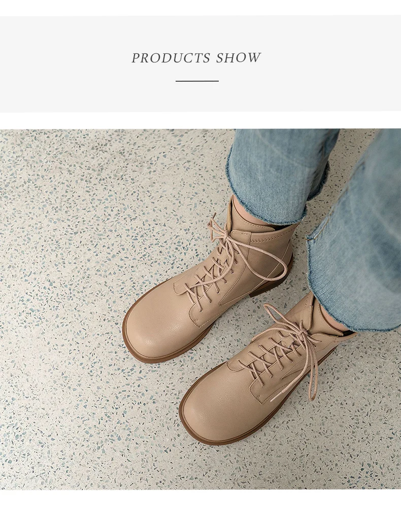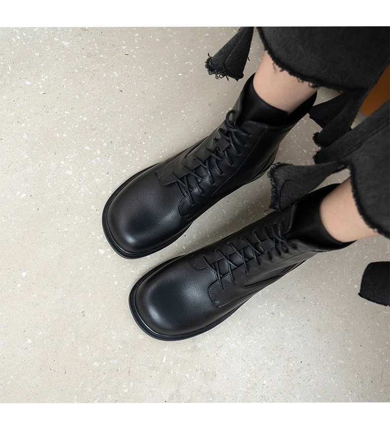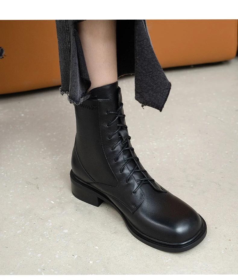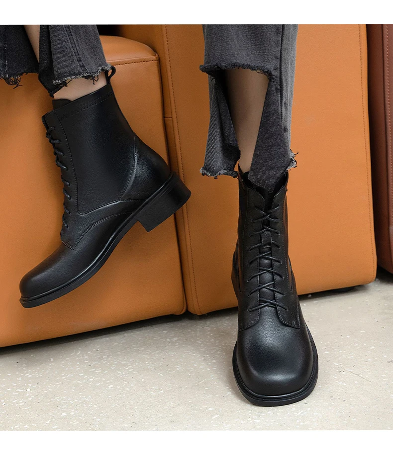 Ботильоны женские из натуральной кожи, с круглым носком, на толстом каблуке
